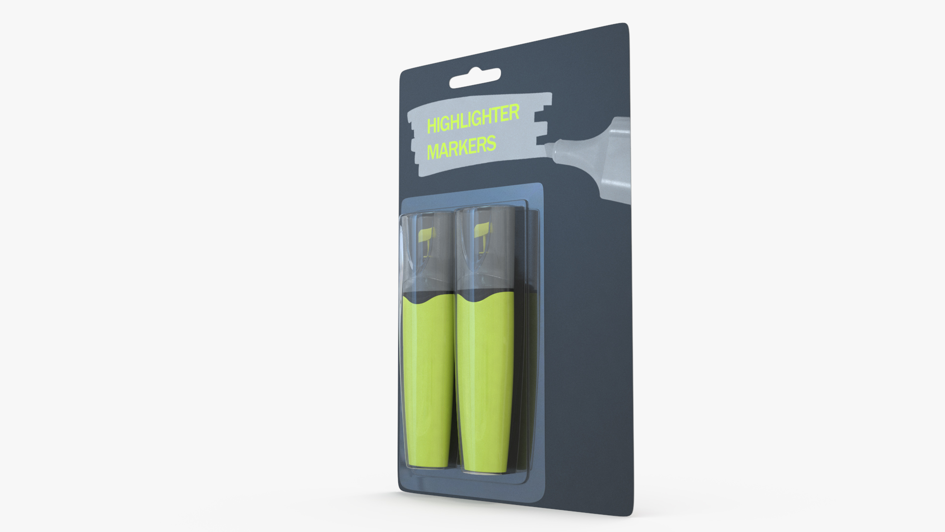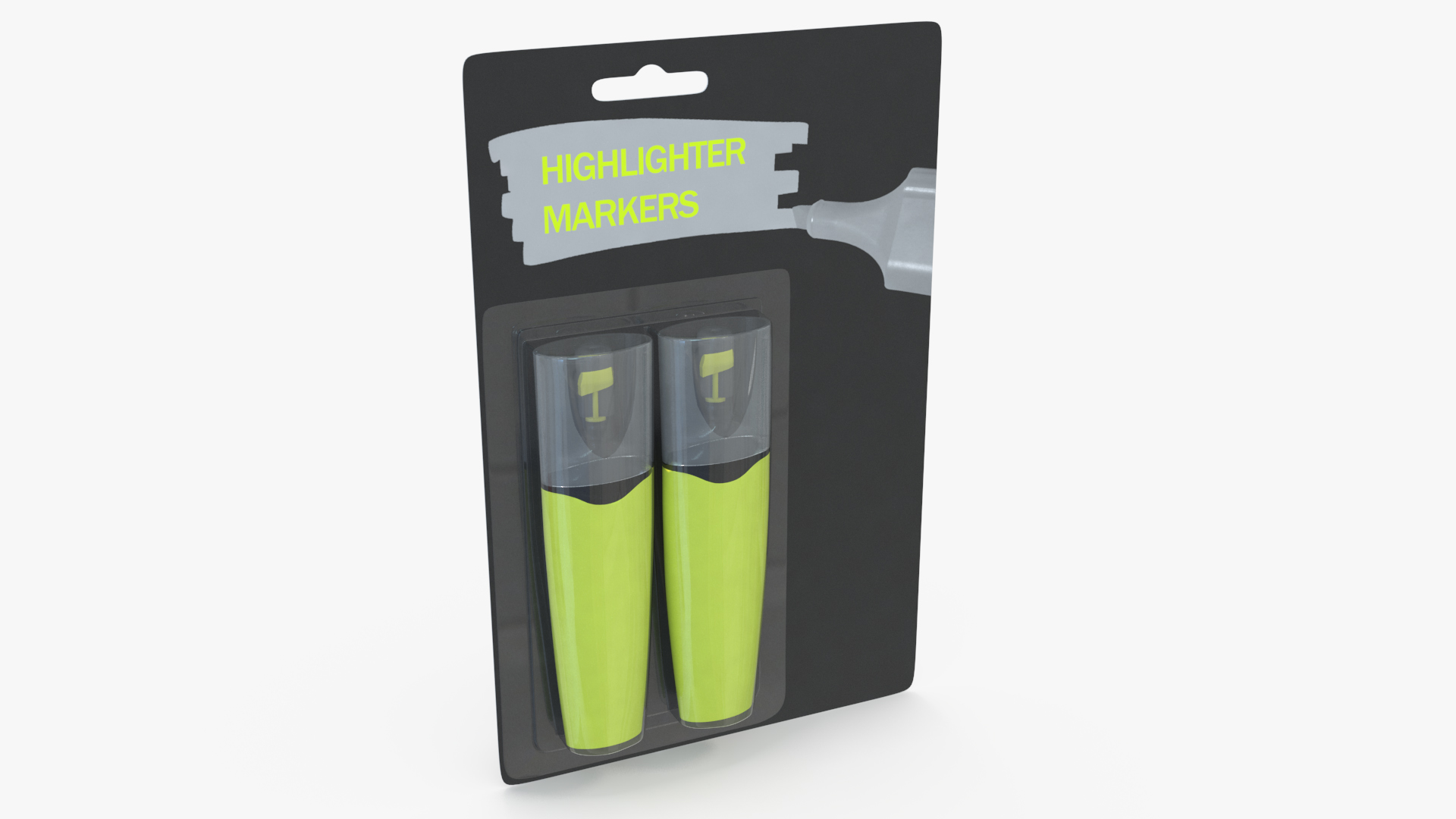 2 Highlighter Markers with Package is a 3d model of two packed writing devices that are used to draw attention to word or text.