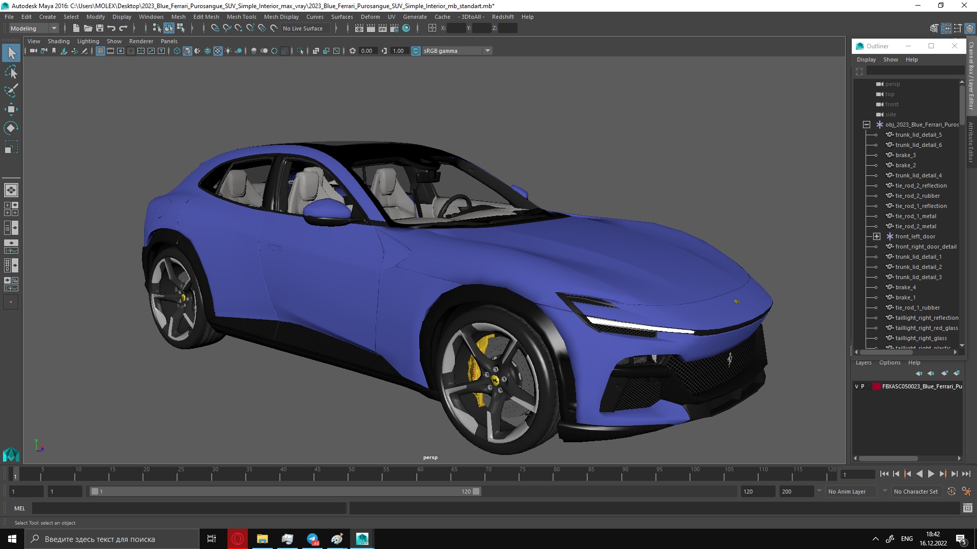 2023 Blue Ferrari Purosangue SUV Simple Interior is a high quality, photo real 3d model that will enhance detail and realism to any of your rendering projects. The model has a fully textured, detailed design that allows for close-up renders, and was originally modeled in 3ds Max 2020 and rendered with V-Ray. Renders have no postprocessing!