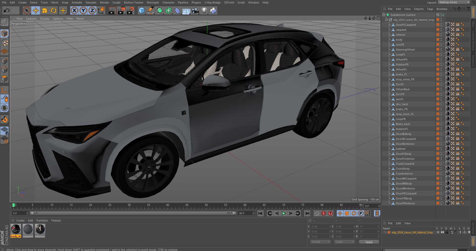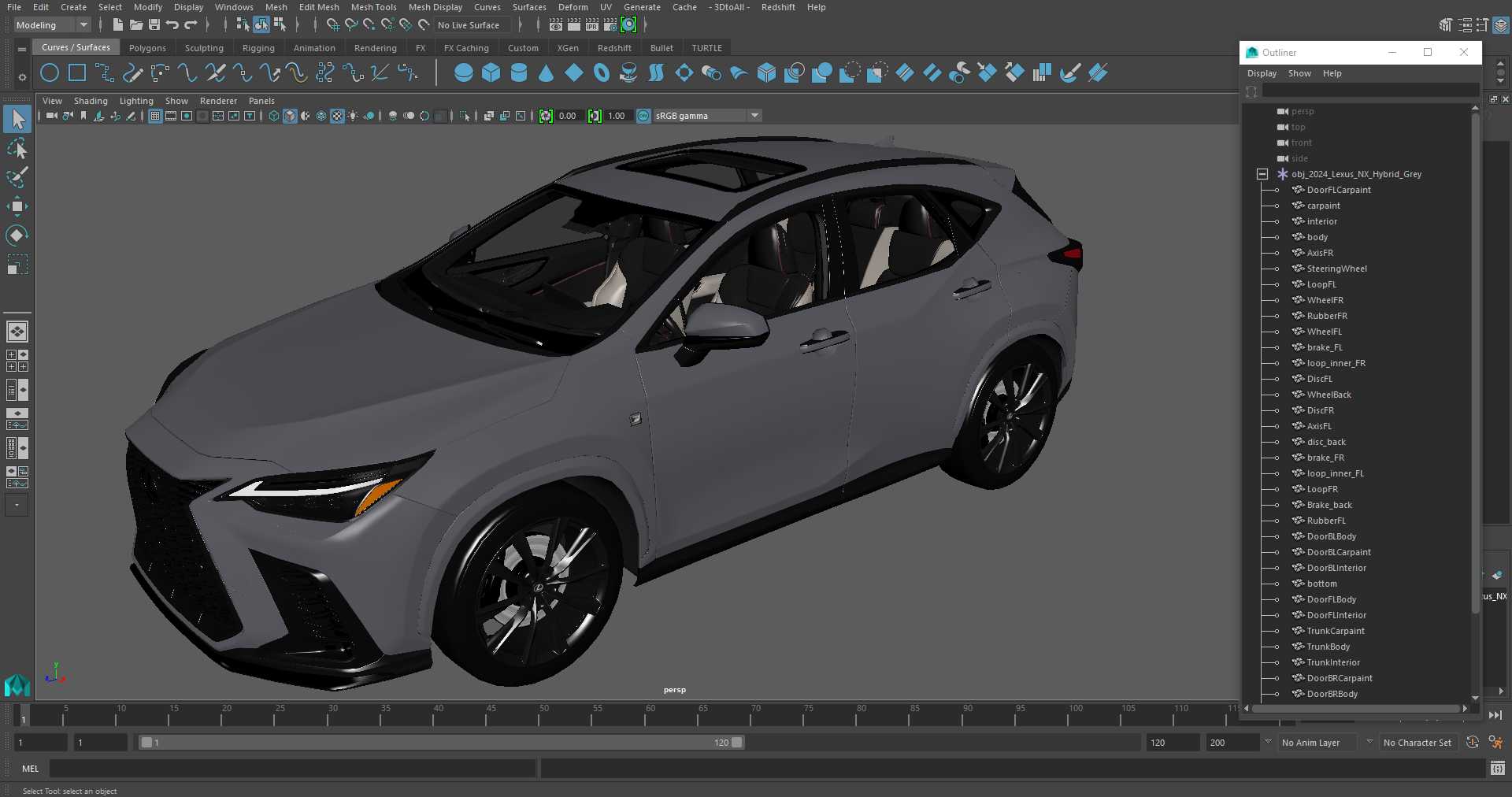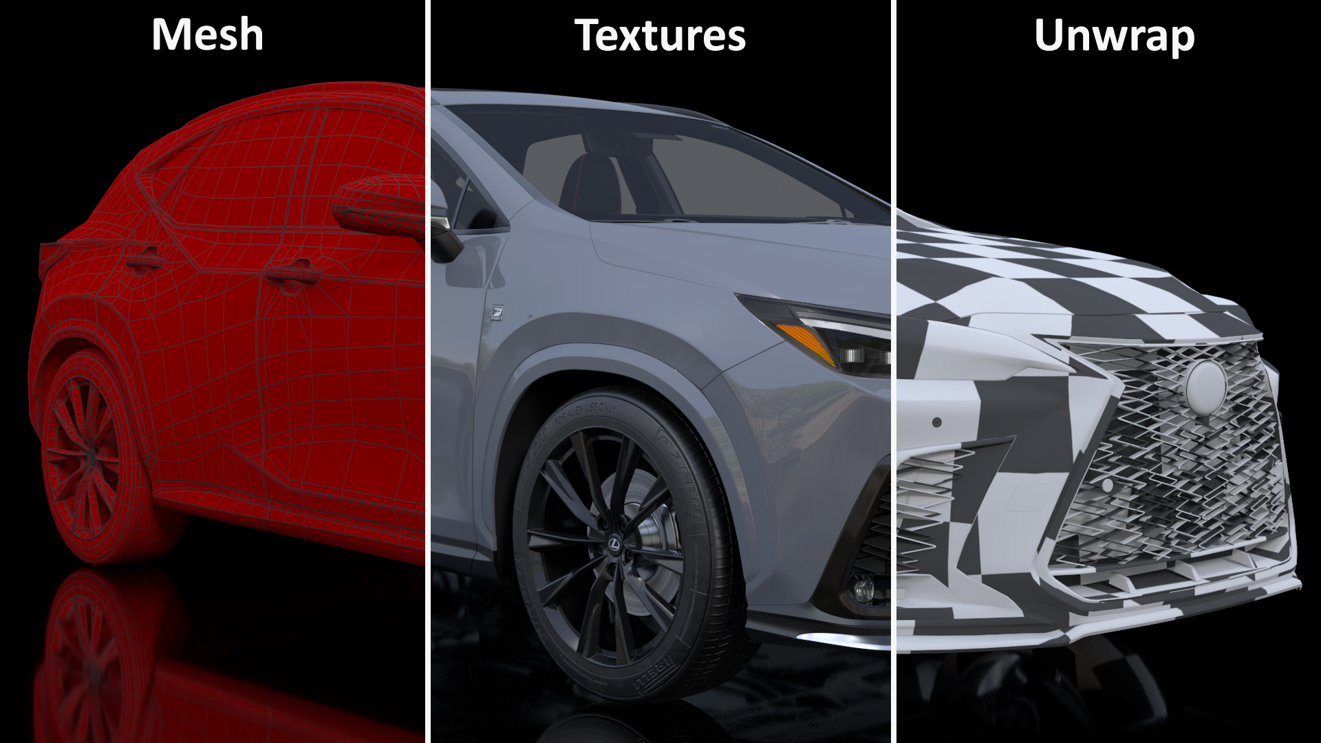 2024 Lexus NX Hybrid Grey is a high quality, photo real 3d model that will enhance detail and realism to any of your rendering projects. The model has a fully textured, detailed design that allows for close-up renders, and was originally modeled in 3ds Max 2020 and rendered with V-Ray. Renders have no postprocessing!