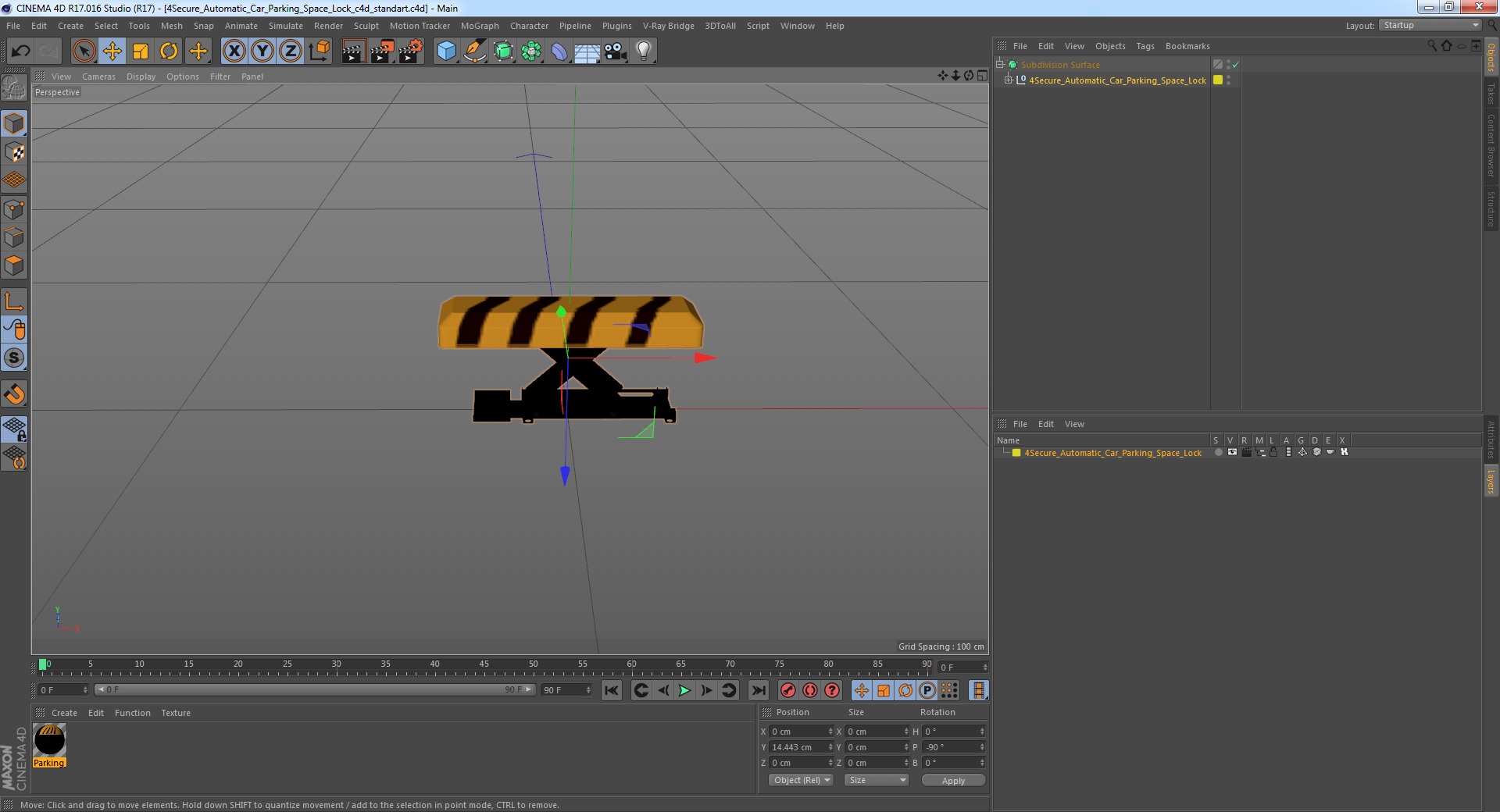 4Secure Automatic Car Parking Space Lock is a high quality, photo real 3d model that will enhance detail and realism to any of your rendering projects. The model has a fully textured, detailed design that allows for close-up renders, and was originally modeled in 3ds Max 2020 and rendered with V-Ray. Renders have no postprocessing!