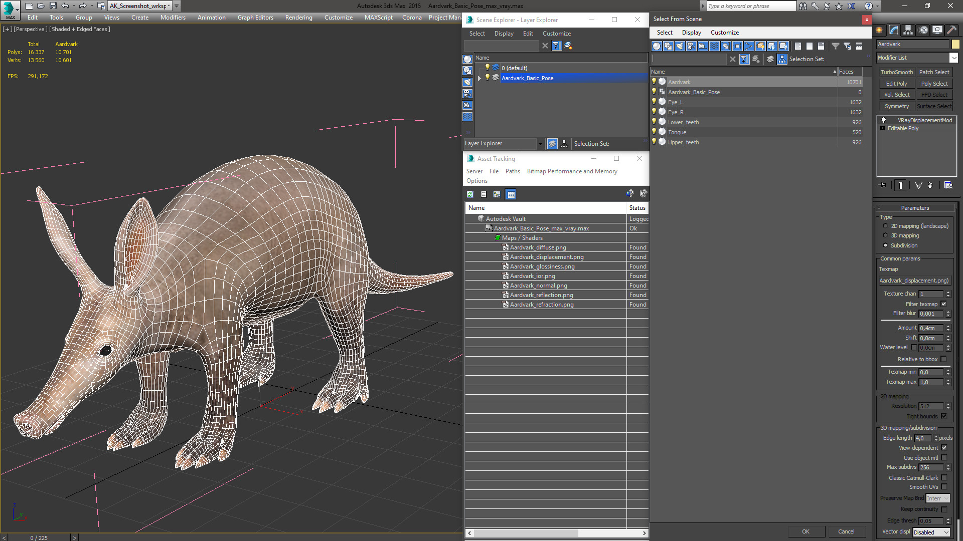 Aardvark Basic Pose is a high quality, photo real 3d model that will enhance detail and realism to any of your rendering projects. The model has a fully textured, detailed design that allows for close-up renders, and was originally modeled in 3ds Max 2020 and rendered with V-Ray. Renders have no postprocessing!