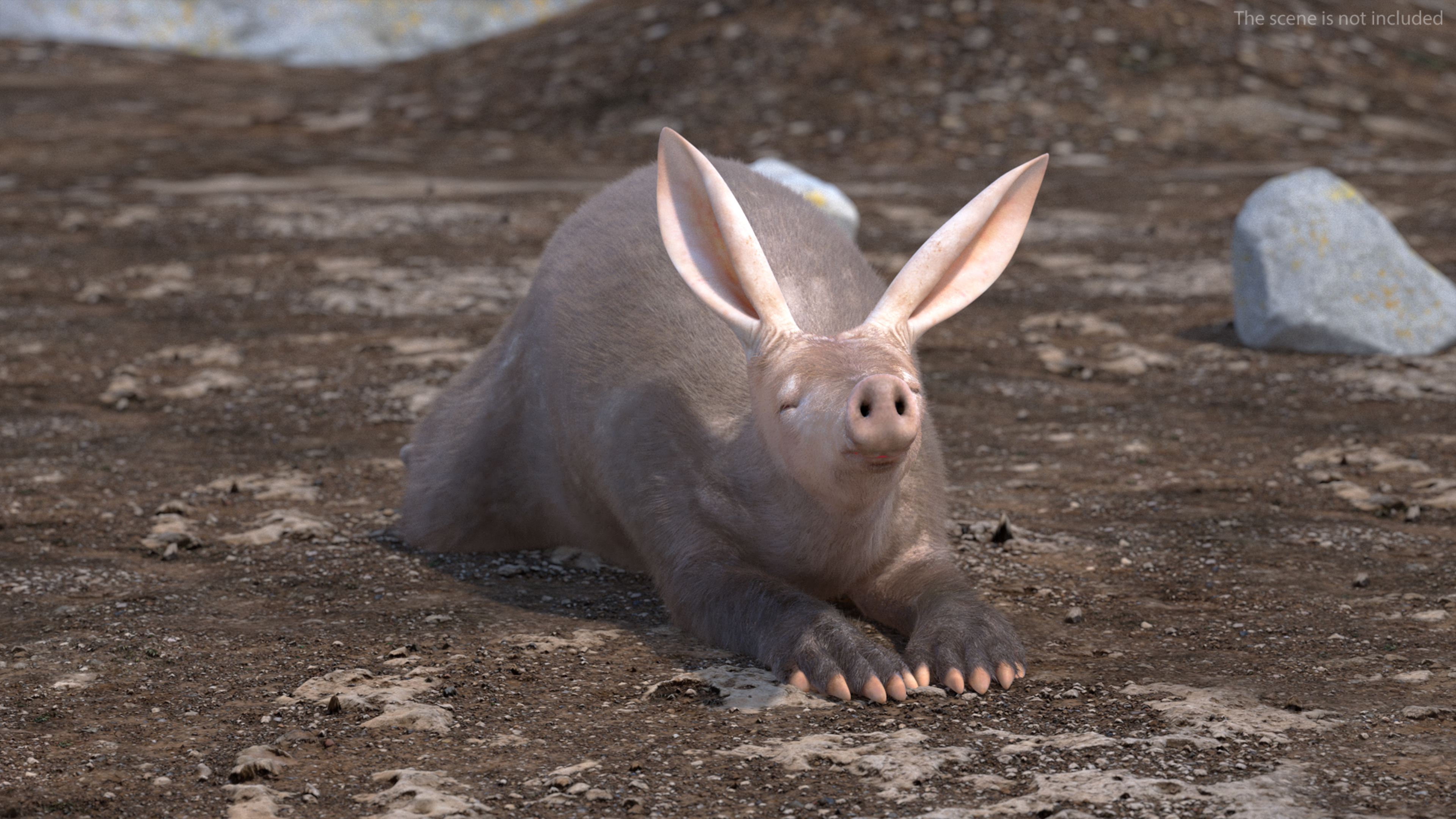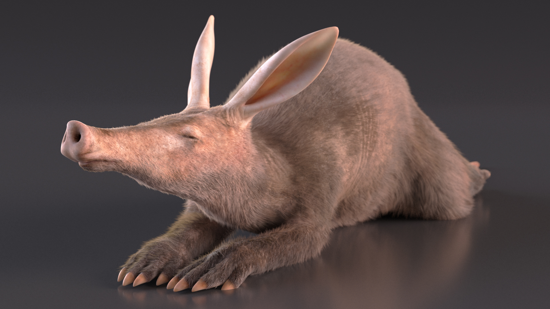Aardvark Lying Pose Fur is a three-dimensional model of aardvark (anteater, African ant bear, Orycteropus afer, or Cape anteater), which is a burrowing, nocturnal, medium-sized, African, mammal cute animal with a funny long snout, similar to that of a pig, which is used to sniff out food.
