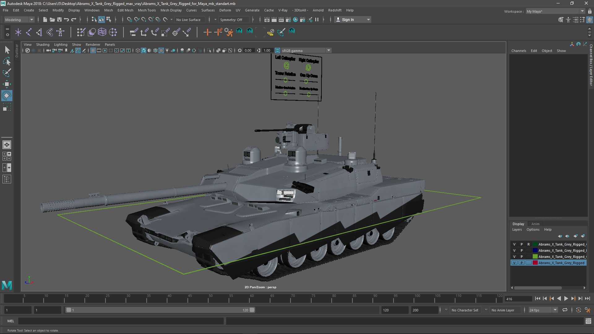 Abrams X Tank Grey Rigged for Maya is fully rigged and is ready to be animated in Maya. You can easily position it the way you need or animate it the way your project requires. See the screenshots to get an idea of how rigging works. The pose of the model on the render images is an example and can be recreated using rig, it is not initially included into the product.