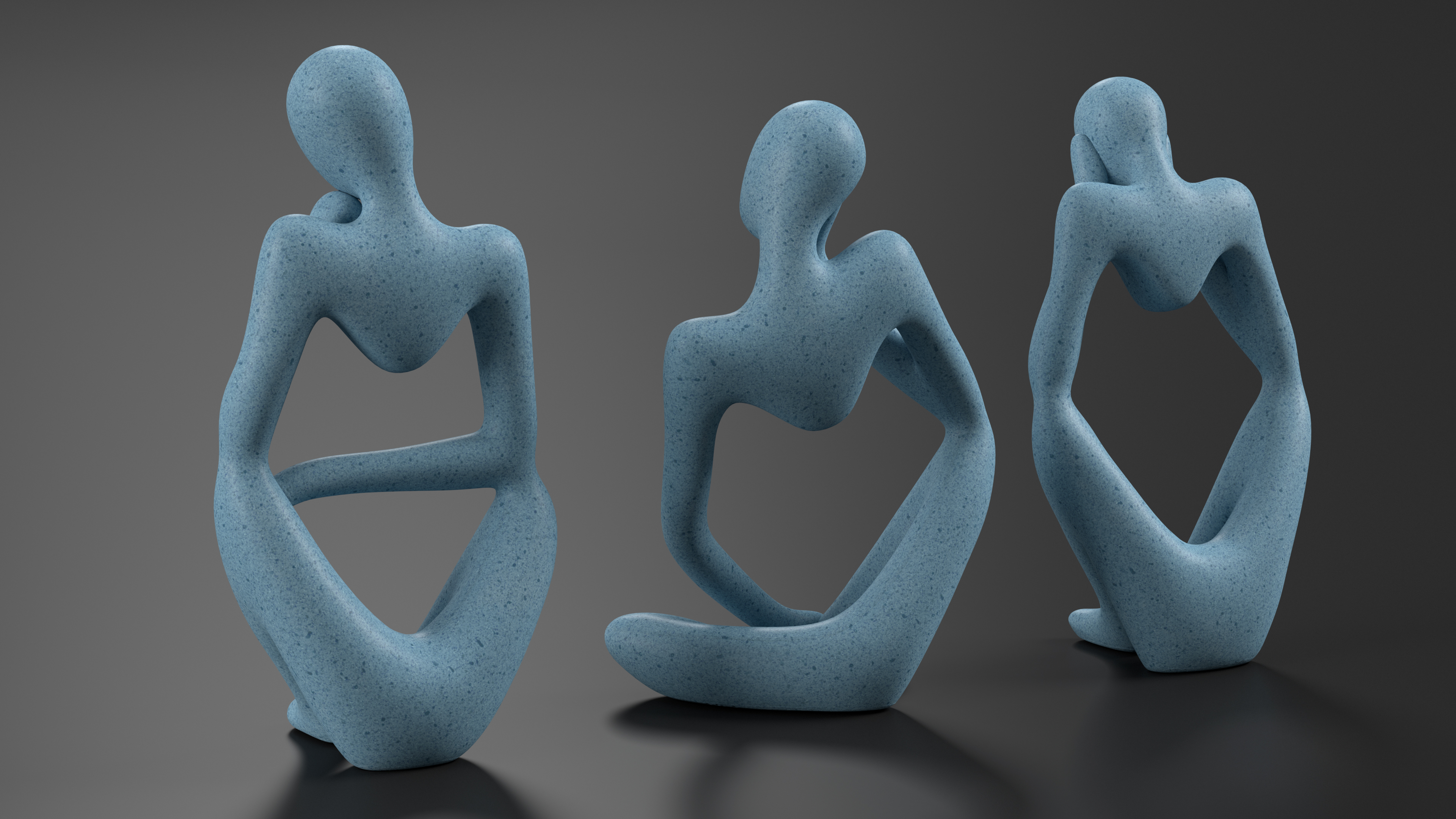 Abstract Thinking Figures Trio Blue Stone is a three-dimensional model of set of abstract thinker figurines, which are home decor sculpture depicting of human figure in a thoughtful pose.