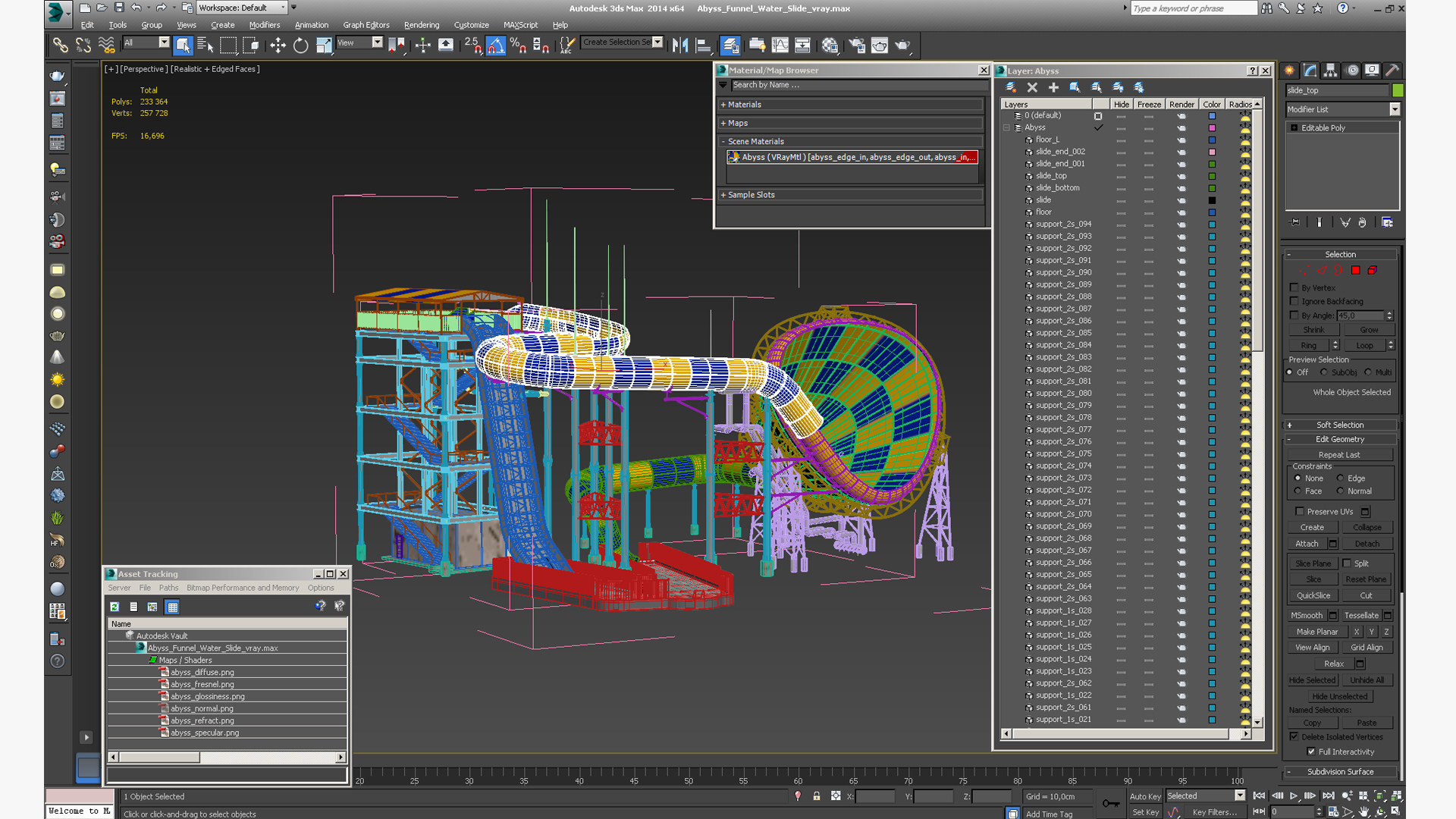 Abyss Funnel Water Slide is a high quality, photo real 3d model that will enhance detail and realism to any of your rendering projects. The model has a fully textured, detailed design that allows for close-up renders, and was originally modeled in 3ds Max 2020 and rendered with V-Ray. Renders have no postprocessing!