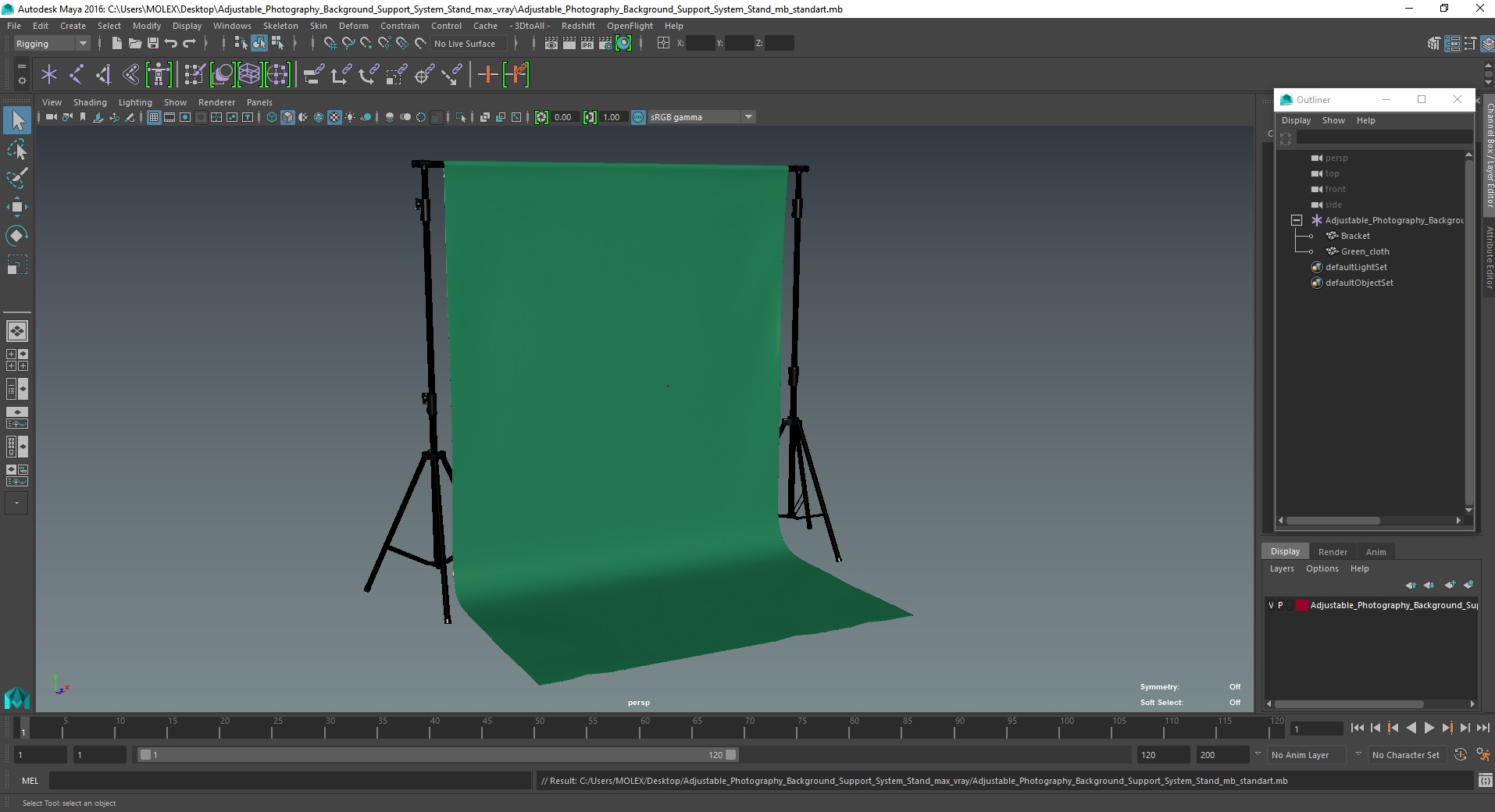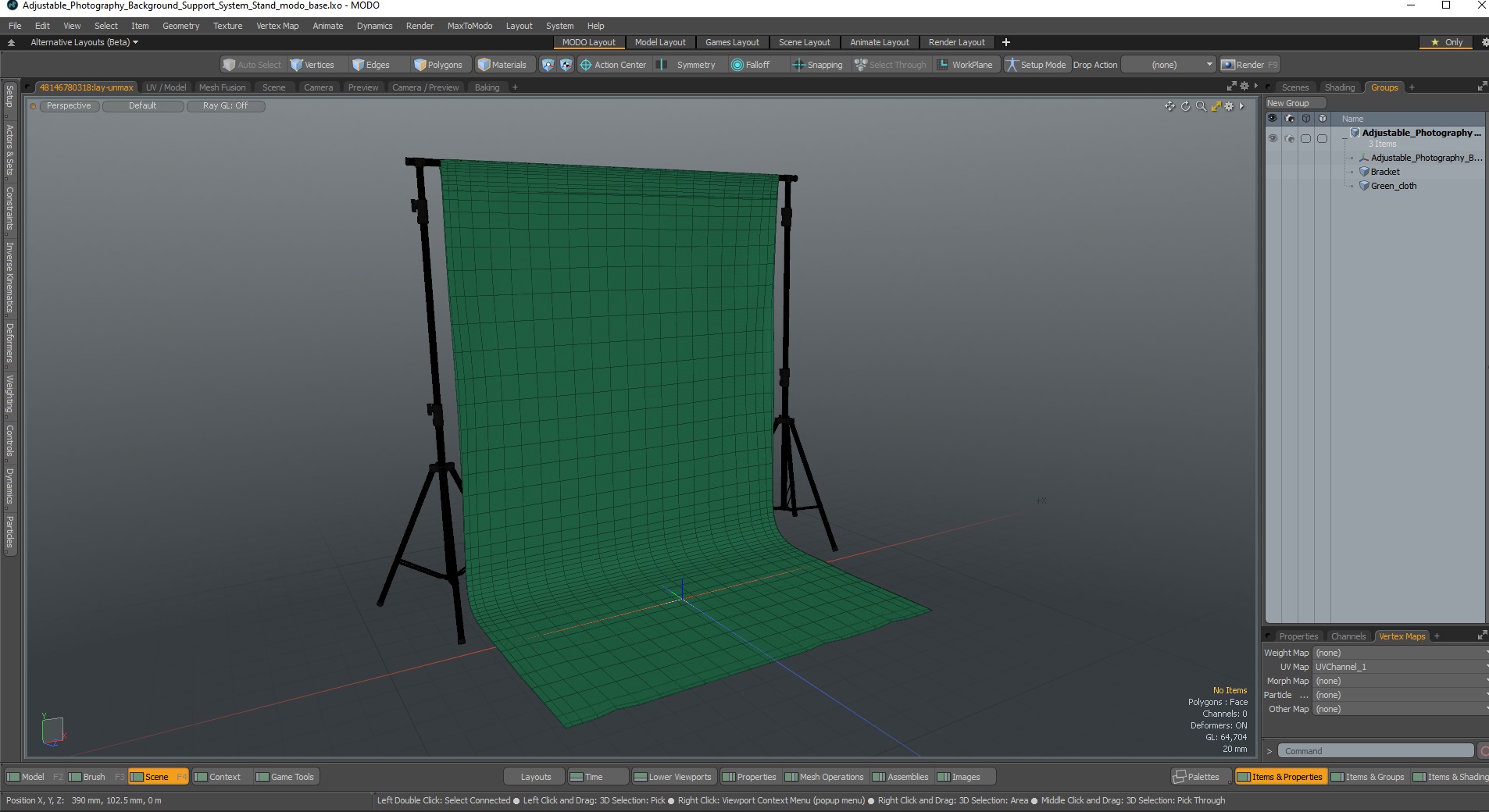 Adjustable Photography Background Support System Stand is a three-dimensional model of photography studio setup featuring a special backdrop stand with a large cloth suitable for chroma key effects (chromakey effects), commonly used in photo and video production to isolate subjects and replace the background.