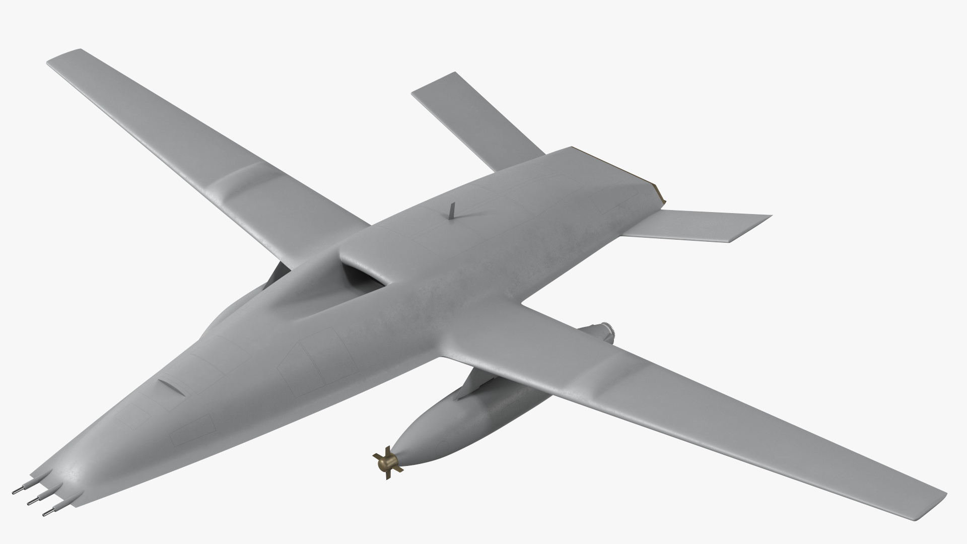 The special Unmanned Combat Aerial Vehicle (UCAV) with one turbofan engine, special stealthy fuselage shaping design, flush inlet to shield engine blades from radar, and notable V-tail.