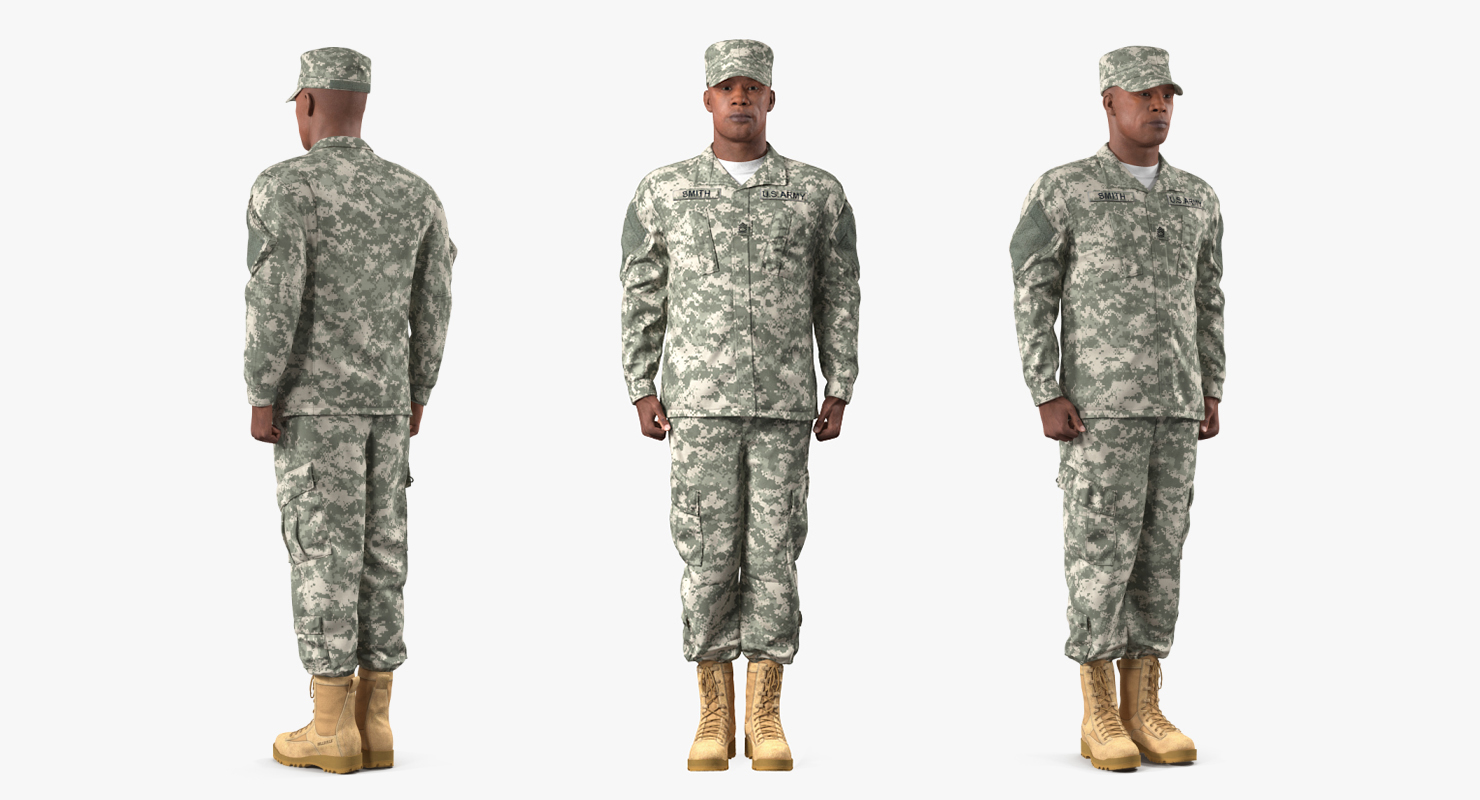 African-American US Soldier ACU Rigged is a high quality, photo real 3d model that will enhance detail and realism to any of your rendering projects. The model has a fully textured, detailed design that allows for close-up renders, and was originally modeled in 3ds Max 2020 and rendered with V-Ray. Renders have no postprocessing!