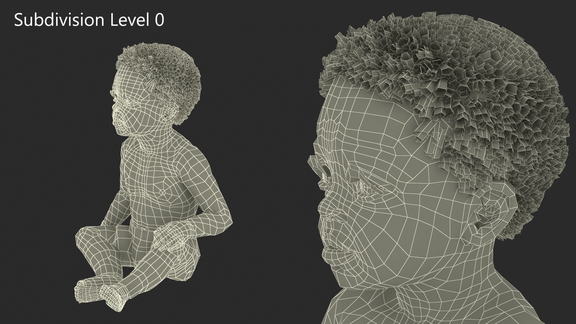 African Baby Boy Wearing Diaper Sitting is a three-dimensional model of baby boy who is a human male kid (little one), and who is a human toddler, specifically a male child in the early stages of life.