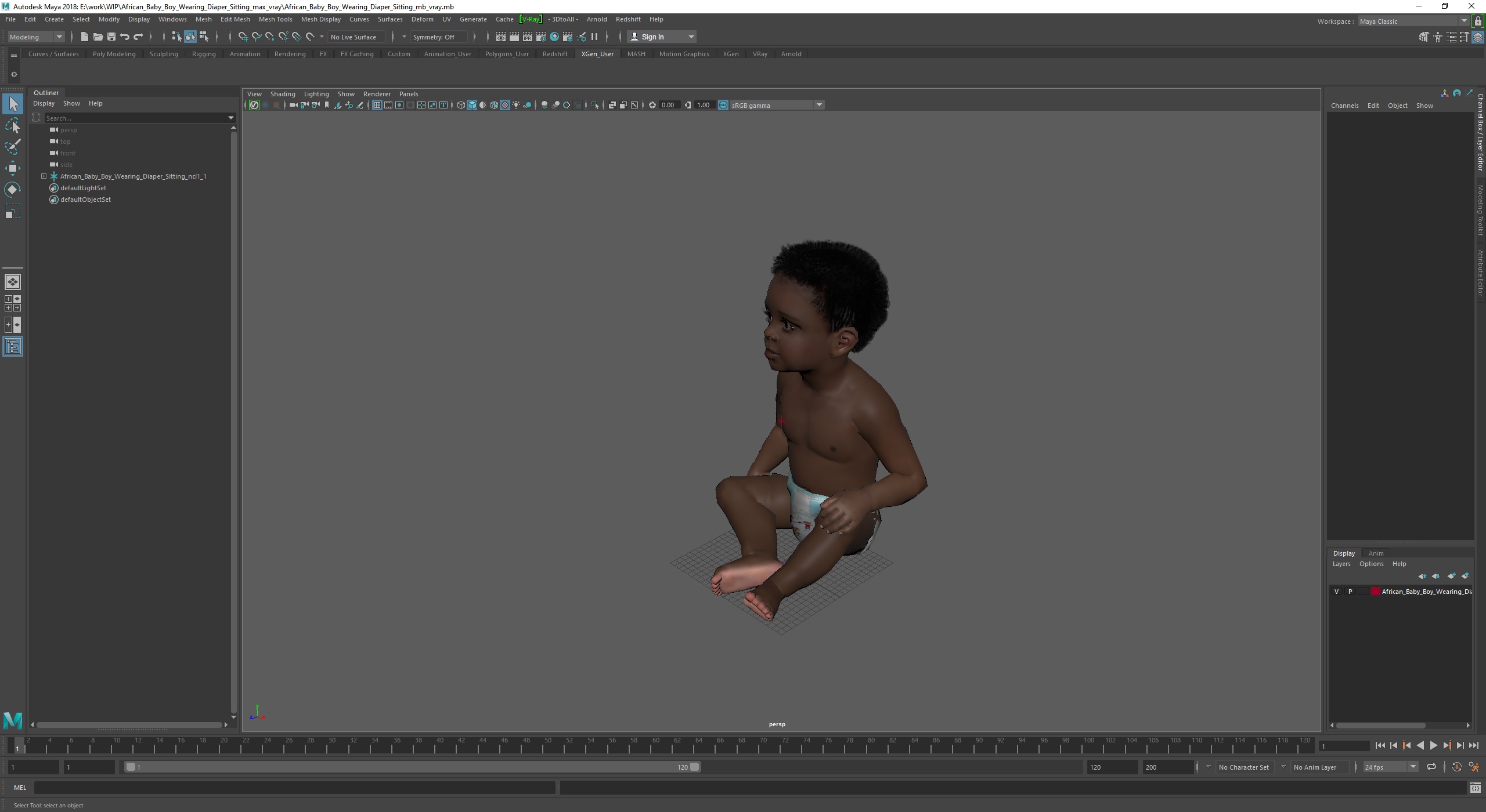 African Baby Boy Wearing Diaper Sitting is a high quality, photo real 3d model that will enhance detail and realism to any of your rendering projects. The model has a fully textured, detailed design that allows for close-up renders, and was originally modeled in 3ds Max 2020 and rendered with V-Ray. Renders have no postprocessing!