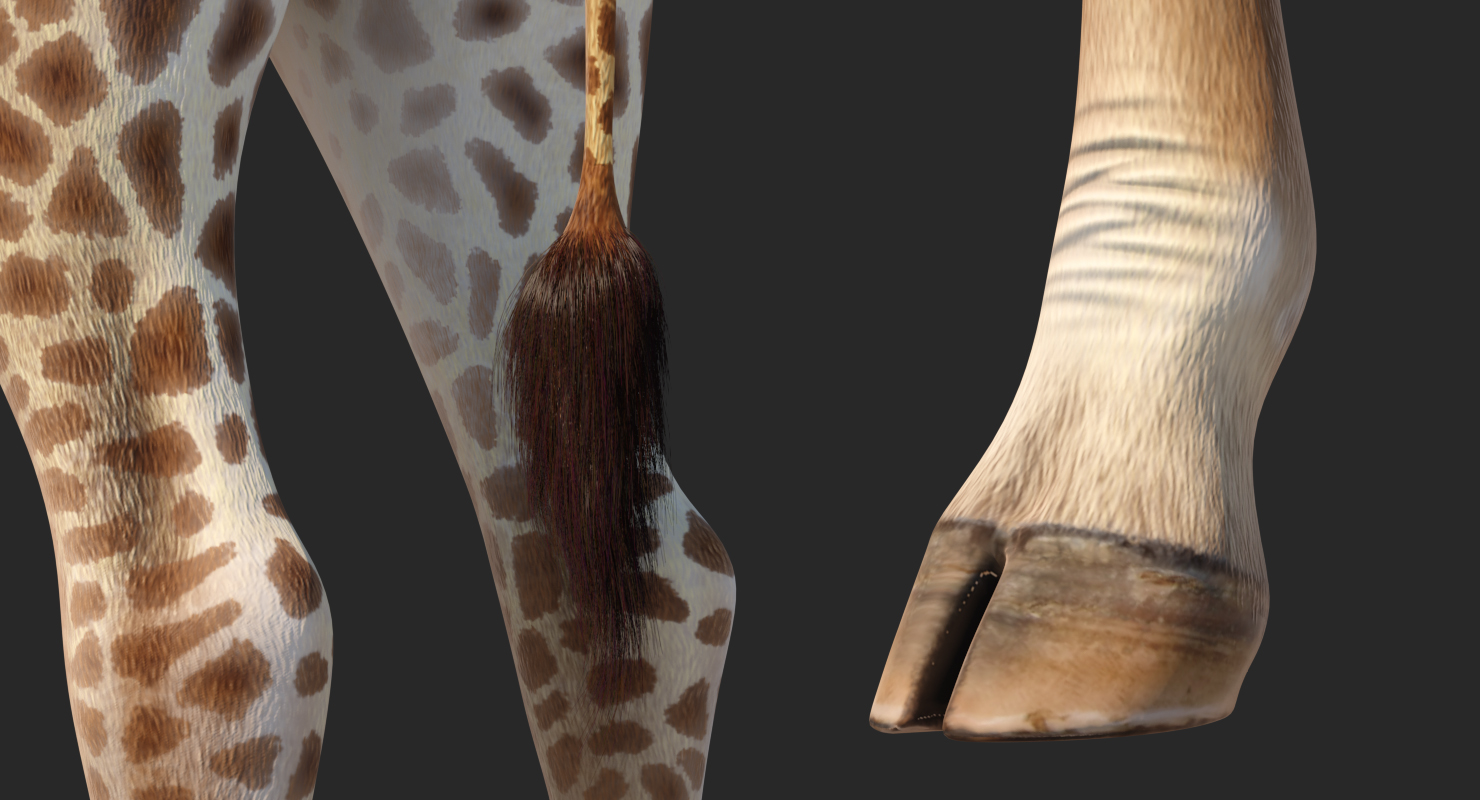 African Giraffe Fur Rigged has a 3dsmax Fur modifier, hair customizable (hair count, hair segments, hair color, root size, tip size, etc).