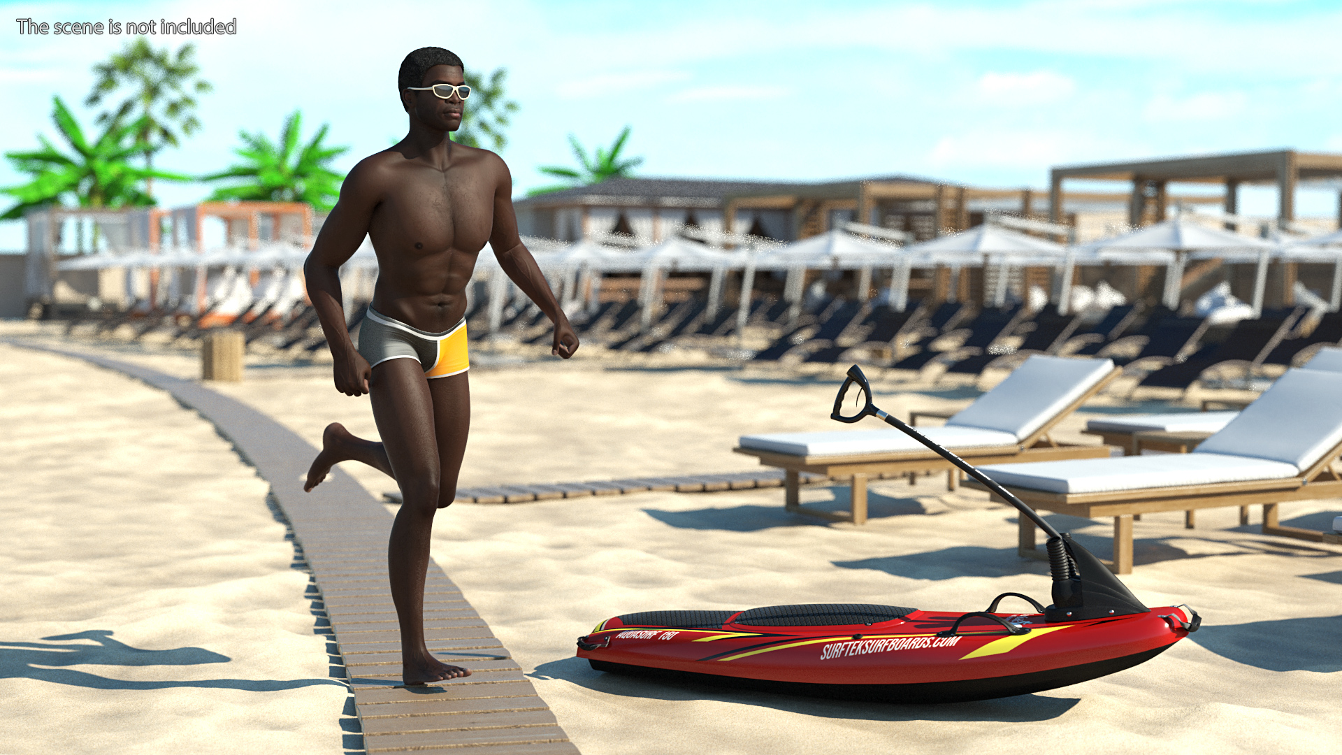 Afro American Man with Surftek Aquasurf Jet Surfboard Rigged is a high quality, photo real 3d model that will enhance detail and realism to any of your rendering projects. The model has a fully textured, detailed design that allows for close-up renders, and was originally modeled in 3ds Max 2020 and rendered with V-Ray. Renders have no postprocessing!