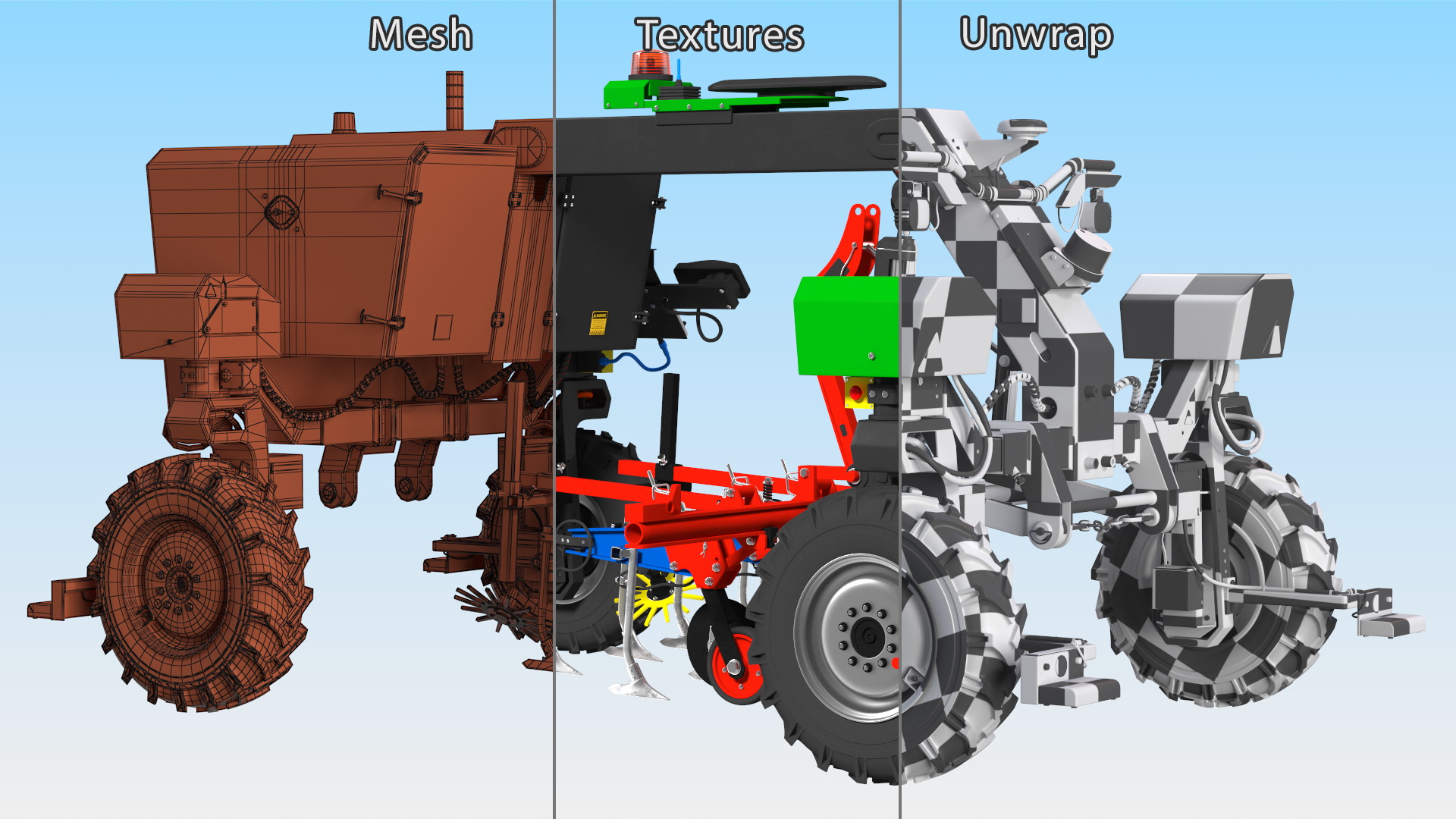 Agriculture Robot Rigged is a three-dimensional model of modern autonomous agricultural robotic machine which featured high-tech guidance system based on RTK GPS signal, and which can works on carrots, parsnips, cabbage, onions, lettuce, leeks, cauliflower, garlic, cilandro, mint, various herbs, and more.