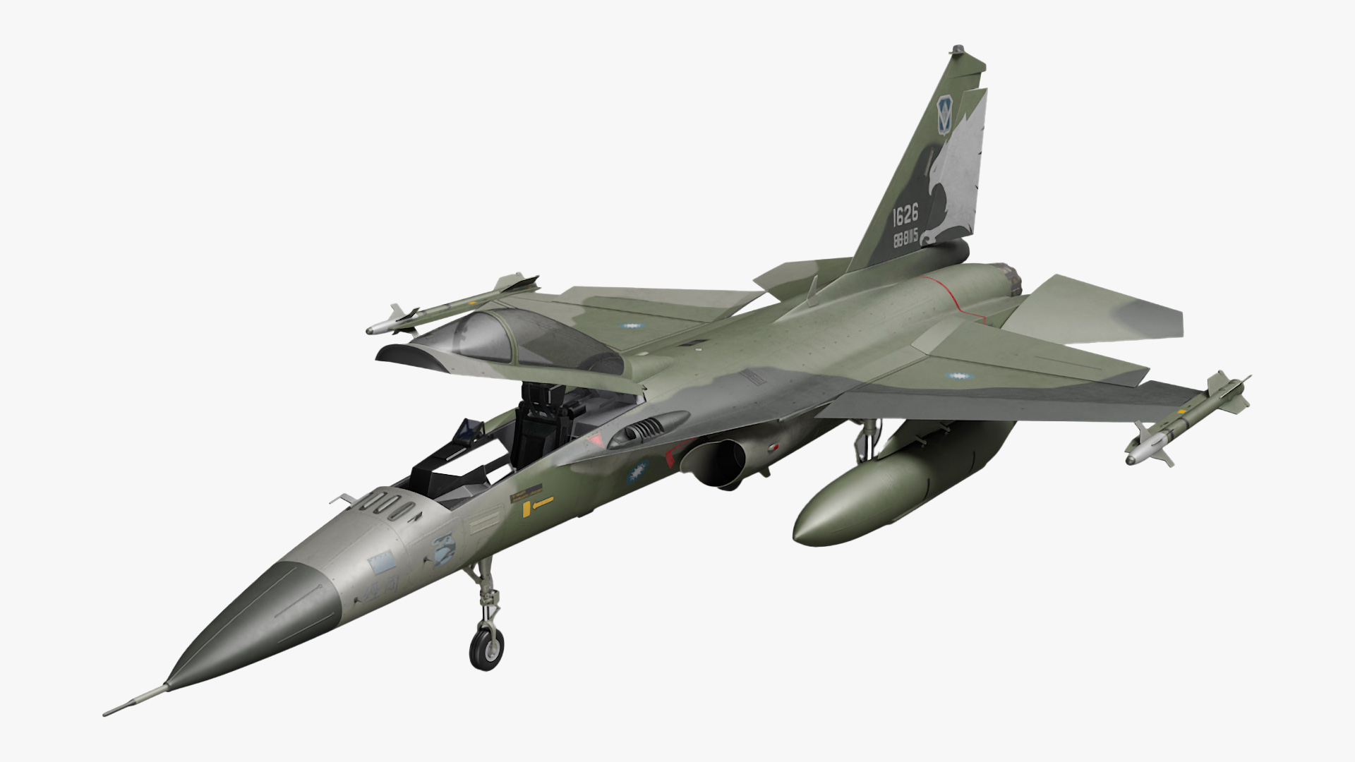AIDC F-CK-1 Ching-Kuo Fighter Jet Green Rigged is a 3d model of a Taiwanese multirole combat aircraft, designed for high-performance aerial operations, featuring rigged components for dynamic animations.