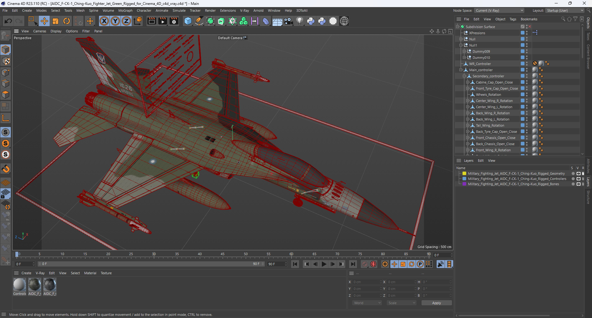 AIDC F-CK-1 Ching-Kuo Fighter Jet Green Rigged for Cinema 4D is fully rigged and is ready to be animated in Cinema 4D. You can easily position it the way you need or animate it the way your project requires. See the screenshots to get an idea of how rigging works. The pose of the model on the render images is an example and can be recreated using rig, it is not initially included into the product.