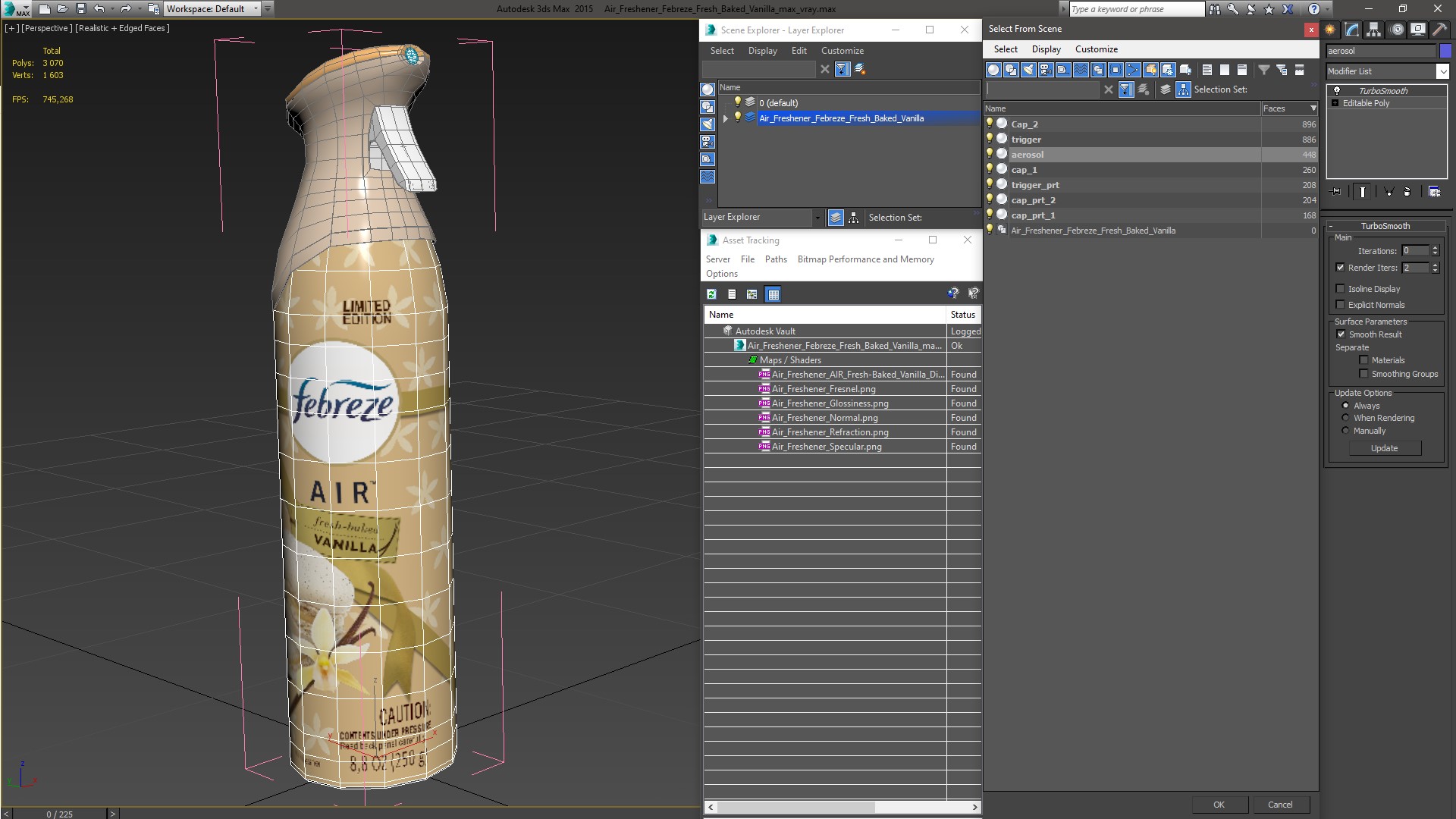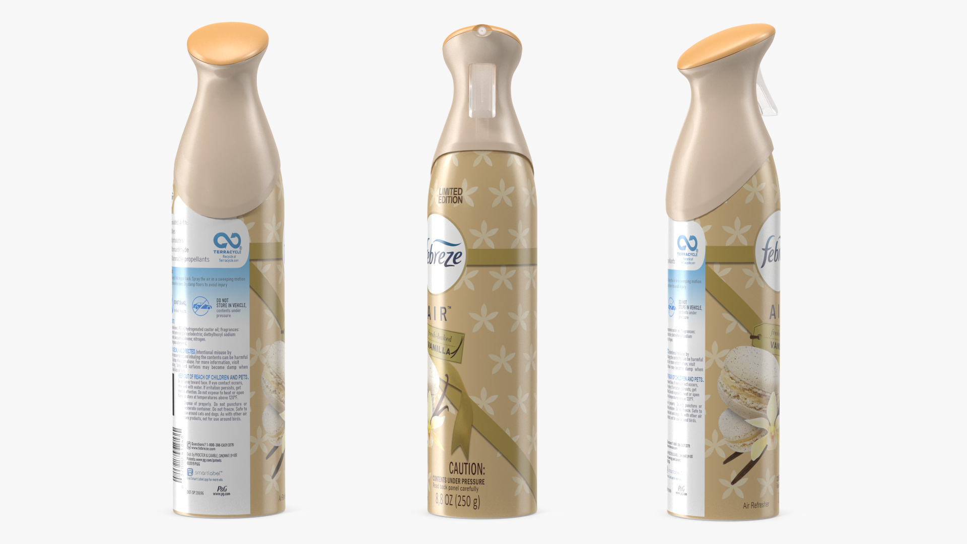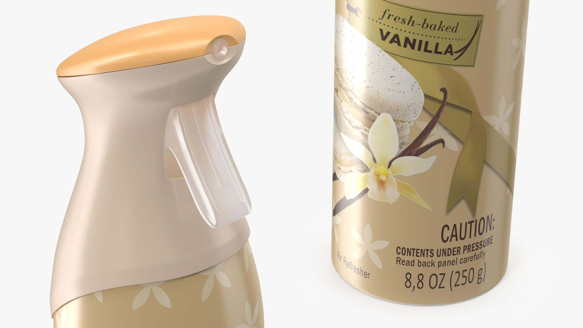 Air Freshener Febreze Fresh Baked Vanilla is a three-dimensional model of a popular air packaging container with trigger.