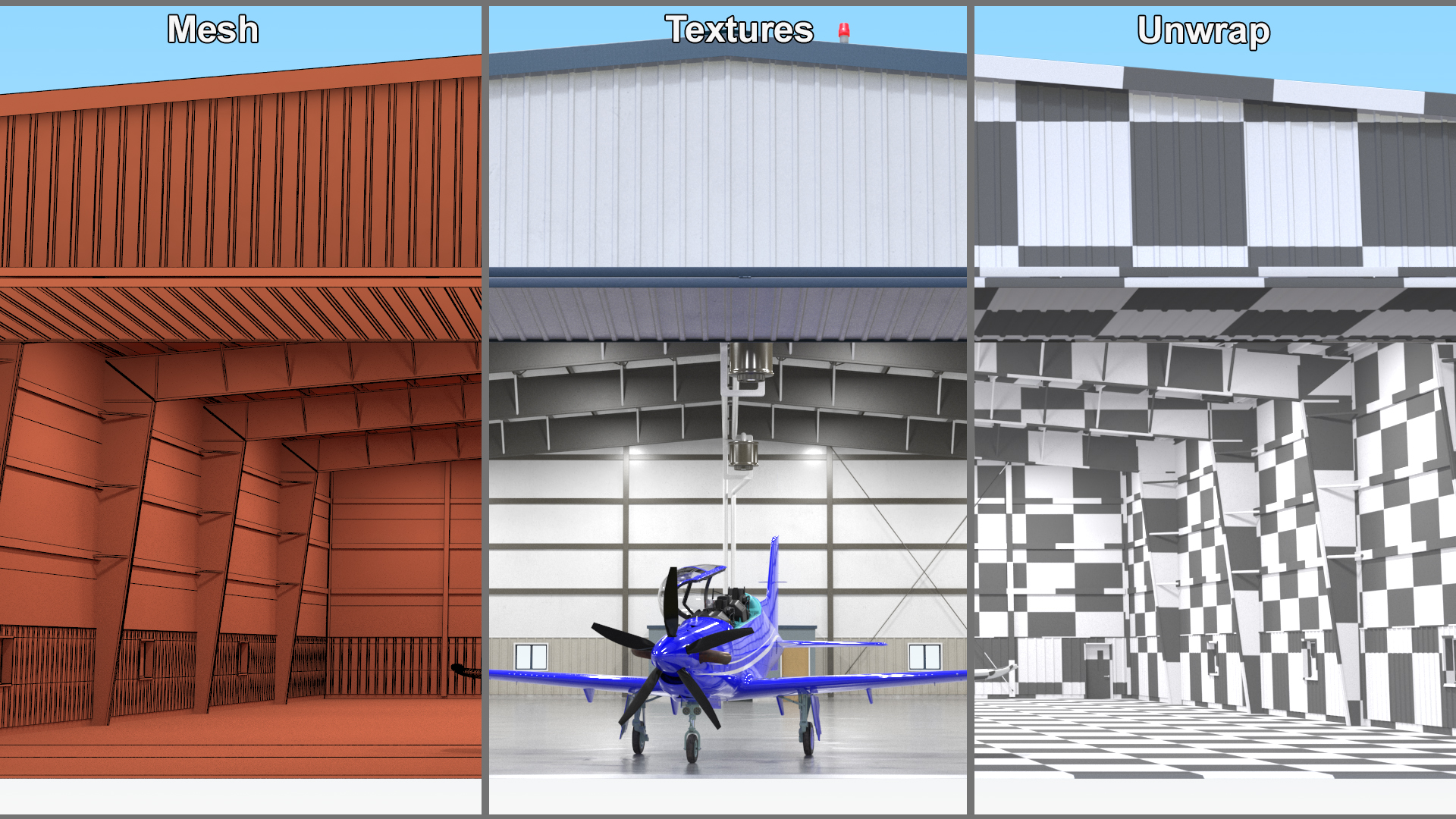 Aircraft Hangar with Airplane Rigged is a high quality, photo real 3d model that will enhance detail and realism to any of your rendering projects. The model has a fully textured, detailed design that allows for close-up renders, and was originally modeled in 3ds Max 2020 and rendered with V-Ray. Renders have no postprocessing!