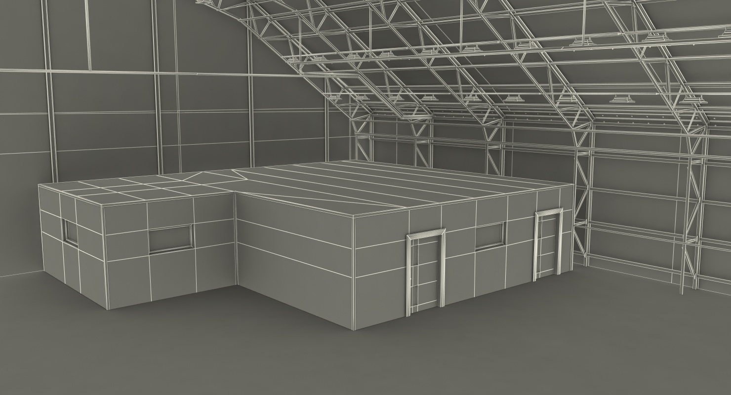 Aircraft Maintenance Hangar is a high quality, photo real 3d model that will enhance detail and realism to any of your rendering projects. The model has a fully textured, detailed design that allows for close-up renders, and was originally modeled in 3ds Max 2020 and rendered with V-Ray. Renders have no postprocessing!