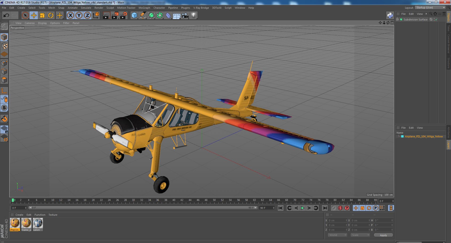 Airplane PZL 104 Wilga Yellow is a high quality, photo real 3d model that will enhance detail and realism to any of your rendering projects. The model has a fully textured, detailed design that allows for close-up renders, and was originally modeled in 3ds Max 2020 and rendered with V-Ray. Renders have no postprocessing!