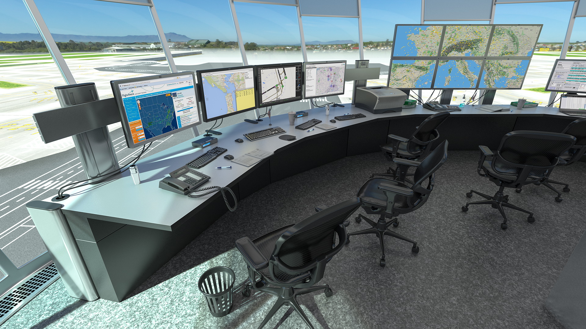 Airport Air Traffic Control Tower with Interior is a high quality, photo real 3d model that will enhance detail and realism to any of your rendering projects. The model has a fully textured, detailed design that allows for close-up renders, and was originally modeled in 3ds Max 2020 and rendered with V-Ray. Renders have no postprocessing!
