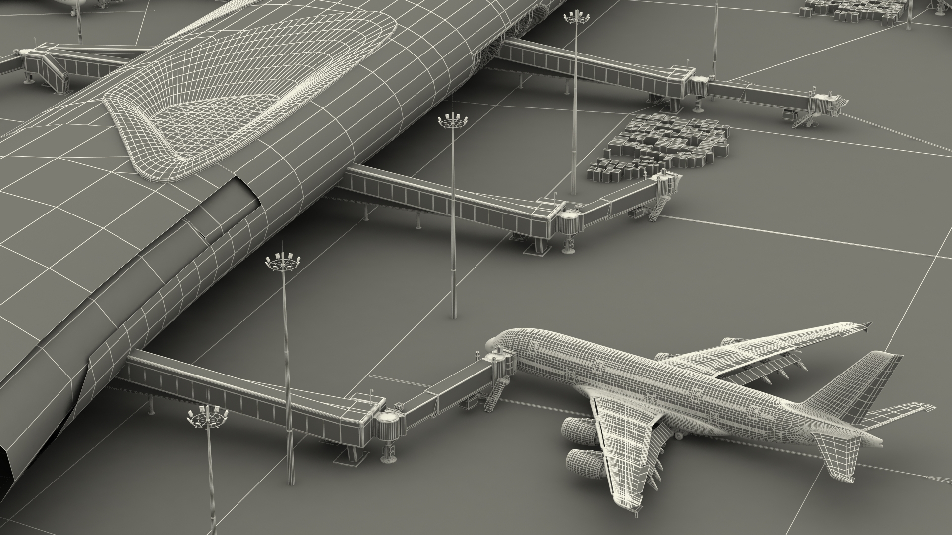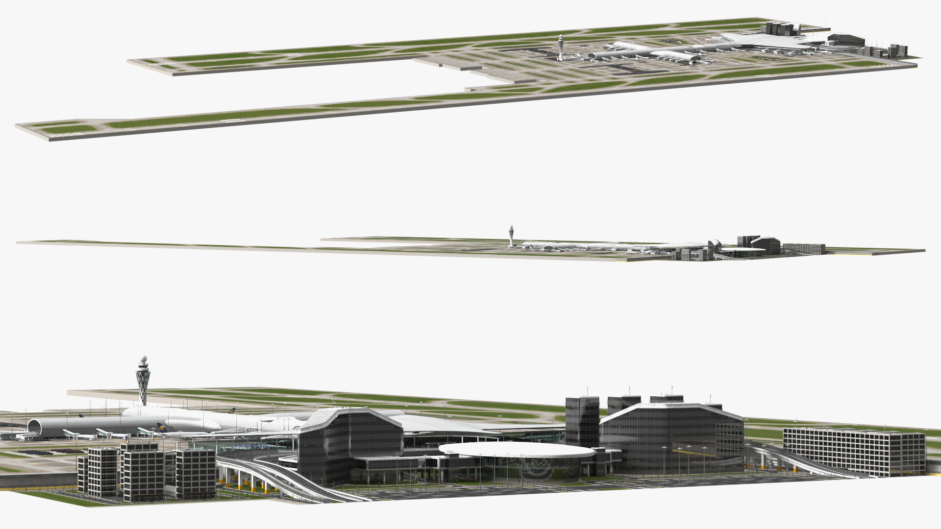 3D model of Airport area facilities and constructions, which are components of modern civil passenger commercial air transport international institution.