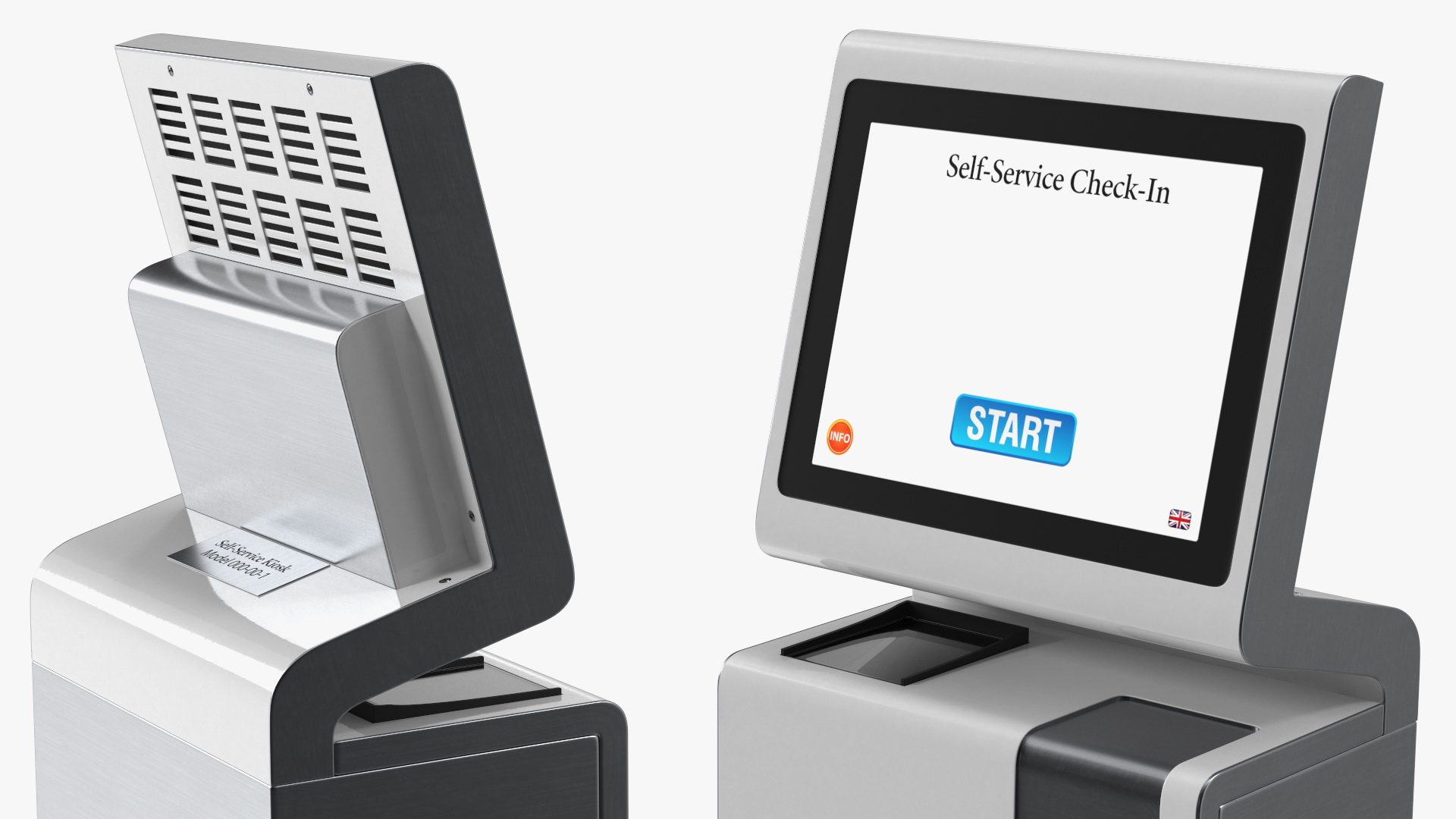 Airport Self-Service Kiosk is a 3d model of standalone, interactive machine located at an airport that allows passengers to check-in for their flight, print boarding passes, check baggage, change seats, and access other flight-related services without the assistance of a staff member.