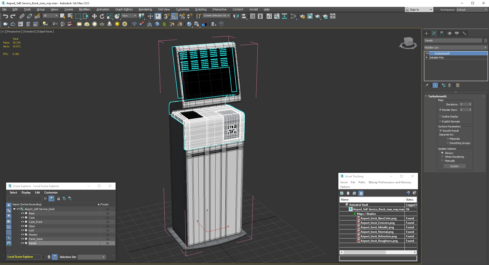 Airport Self-Service Kiosk is a high quality, photo real 3d model that will enhance detail and realism to any of your rendering projects. The model has a fully textured, detailed design that allows for close-up renders, and was originally modeled in 3ds Max 2020 and rendered with V-Ray. Renders have no postprocessing!
