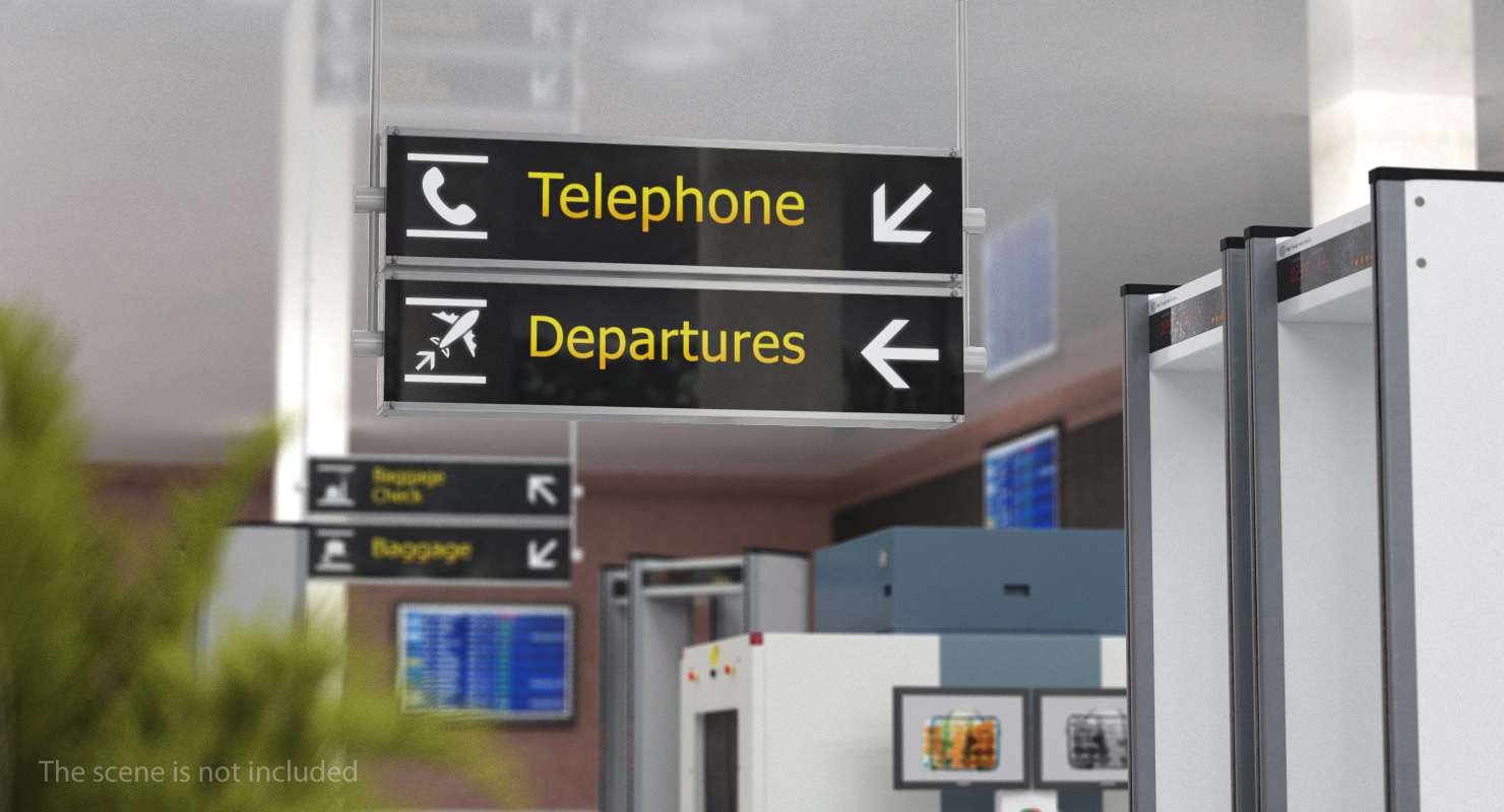 Airport Signs Telephone Departures is a high quality, photo real 3d model that will enhance detail and realism to any of your rendering projects. The model has a fully textured, detailed design that allows for close-up renders, and was originally modeled in 3ds Max 2020 and rendered with V-Ray. Renders have no postprocessing!