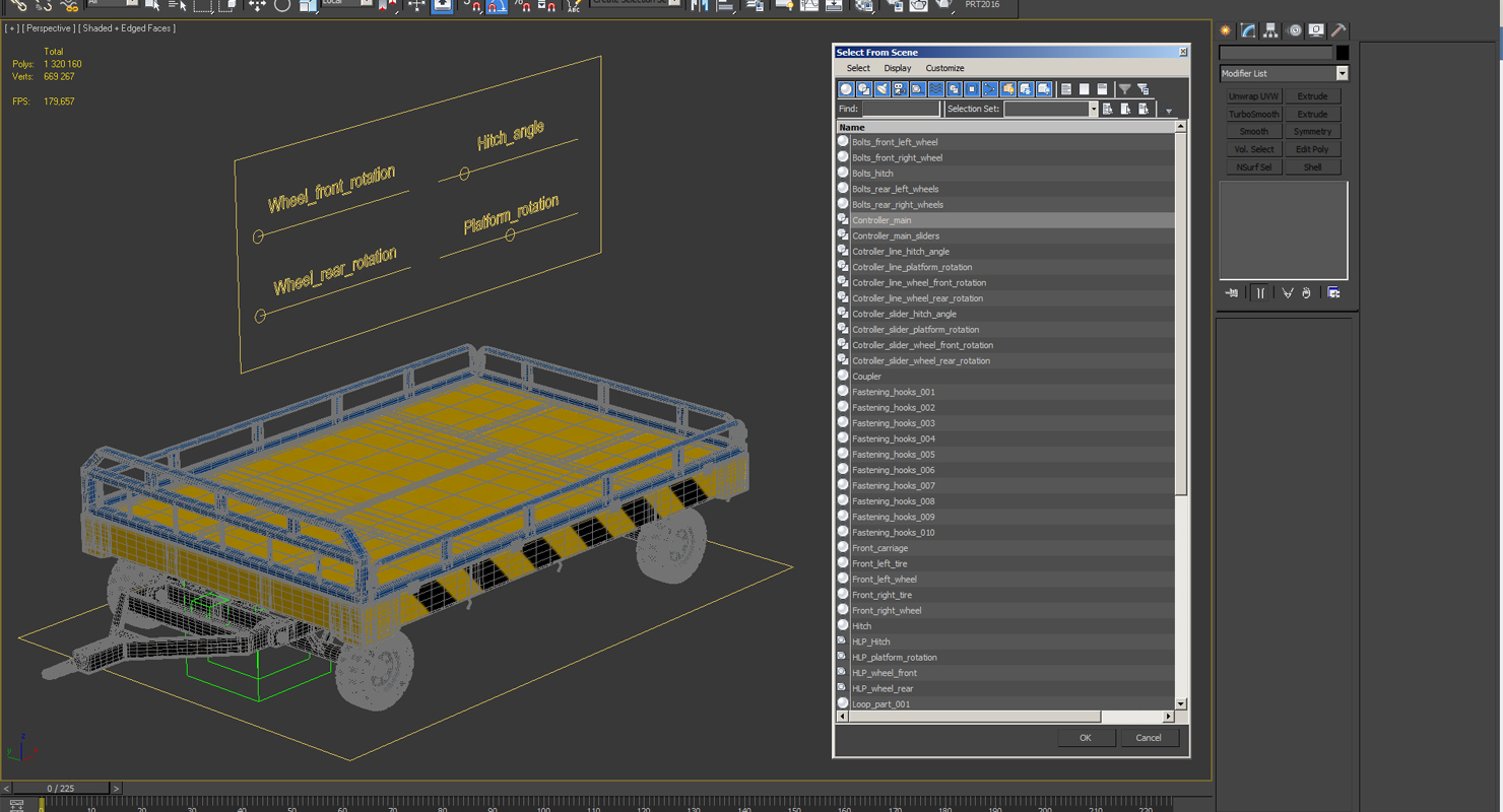 Airport Transport Trailer Low Bed Platform Rigged is fully rigged and is ready to be animated. You can easily position it the way you need or animate it the way your project requires using helpers in 3D Studio Max. See the turntable to get an idea of how rigging works.