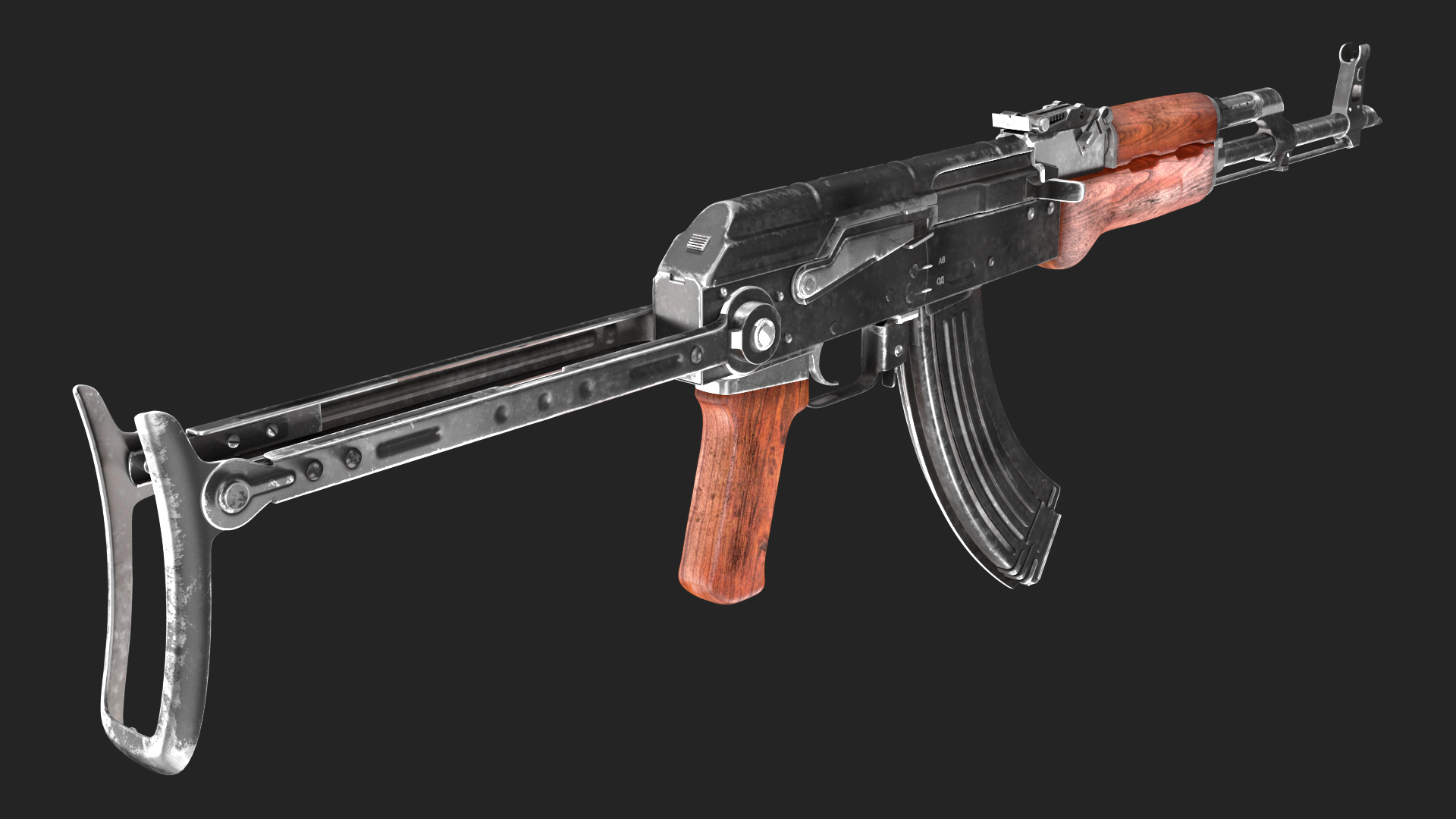 AKMS Assault Rifle is a 3d model of a variant of the AK-47 rifle that features a folding stock.