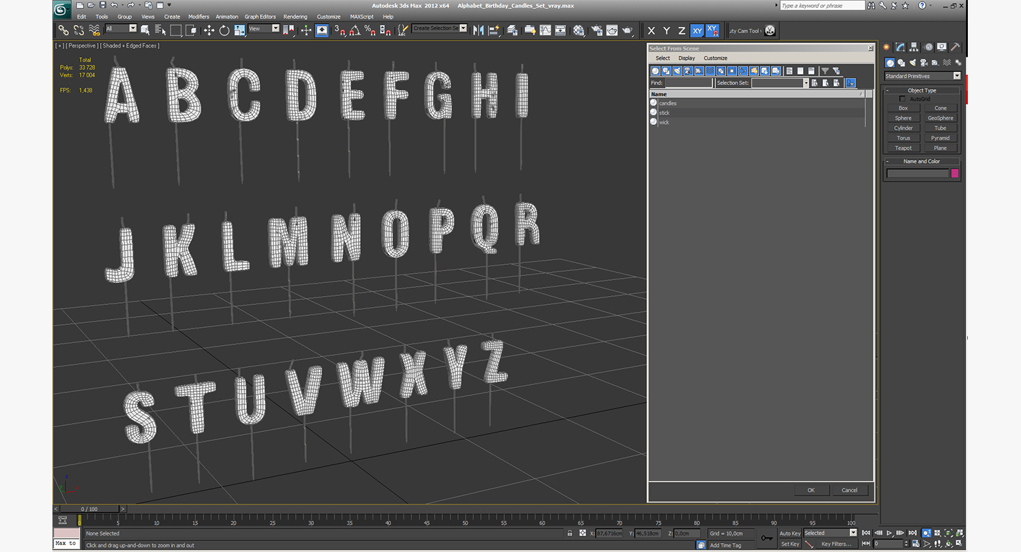 Alphabet Birthday Candles Set is a high quality, photo real 3d model that will enhance detail and realism to any of your rendering projects. The model has a fully textured, detailed design that allows for close-up renders, and was originally modeled in 3ds Max 2020 and rendered with V-Ray. Renders have no postprocessing!