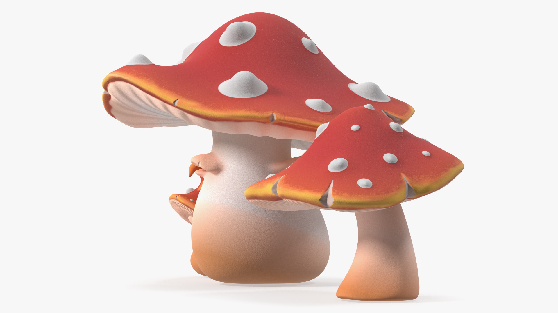 Amanita Cartoon Mushrooms 3 Pieces is a 3D model of set of forest fungus plants which are Amanita mushroom (Amanita muscaria, fly agaric, fly amanita) poisonous dangerous psychoactive fungus items with toxic hallucinogenic properties.