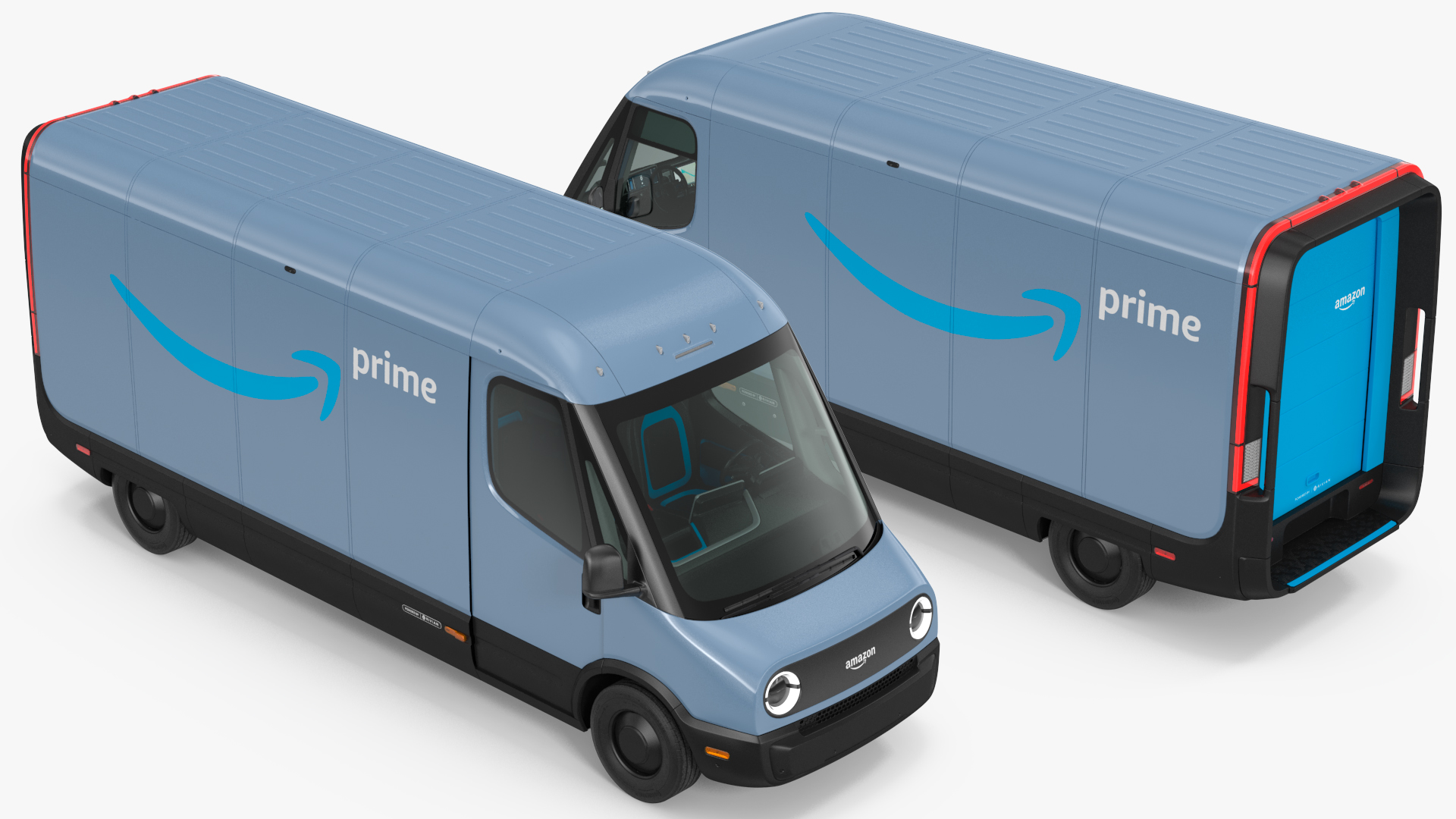 Amazon Electric Delivery Van Rigged is a three-dimensional model of a contemporary e-commerce van EV transport.