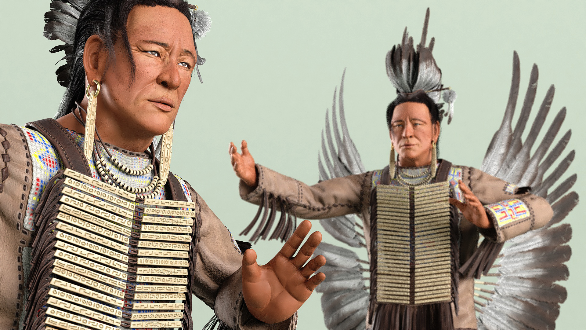 American Indian in a Ritual Dance is a high quality, photo real 3d model that will enhance detail and realism to any of your rendering projects. The model has a fully textured, detailed design that allows for close-up renders, and was originally modeled in 3ds Max 2020 and rendered with V-Ray. Renders have no postprocessing!