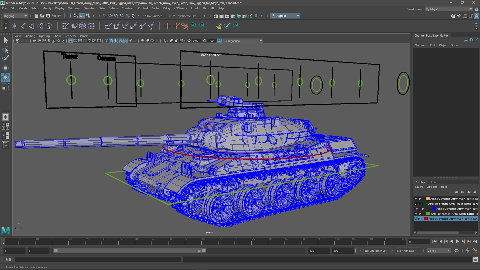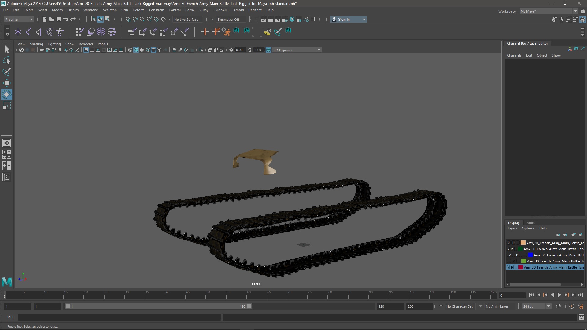 Amx-30 French Army Main Battle Tank Rigged for Maya is fully rigged and is ready to be animated in Maya. You can easily position it the way you need or animate it the way your project requires. See the screenshots to get an idea of how rigging works. The pose of the model on the render images is an example and can be recreated using rig, it is not initially included into the product.