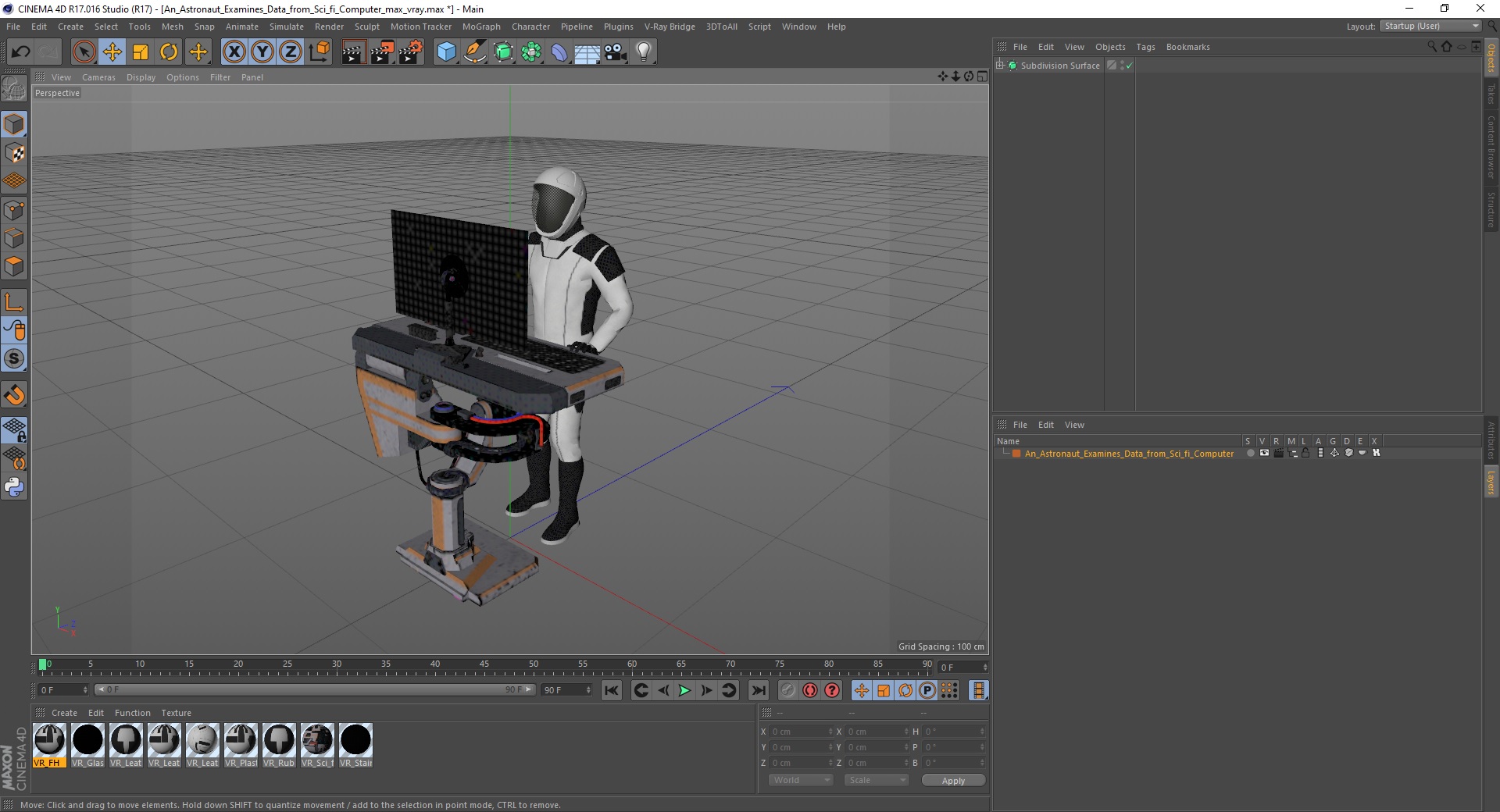 An Astronaut Examines Data from Sci-fi Computer is a high quality, photo real 3d model that will enhance detail and realism to any of your rendering projects. The model has a fully textured, detailed design that allows for close-up renders, and was originally modeled in 3ds Max 2020 and rendered with V-Ray. Renders have no postprocessing!