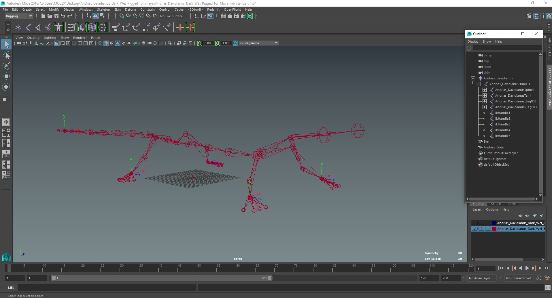 Andrias Davidianus Dark Wet Rigged for Maya is fully rigged and is ready to be animated in Maya. You can easily position it the way you need or animate it the way your project requires. See the screenshots to get an idea of how rigging works. The pose of the model on the render images is an example and can be recreated using rig, it is not initially included into the product.