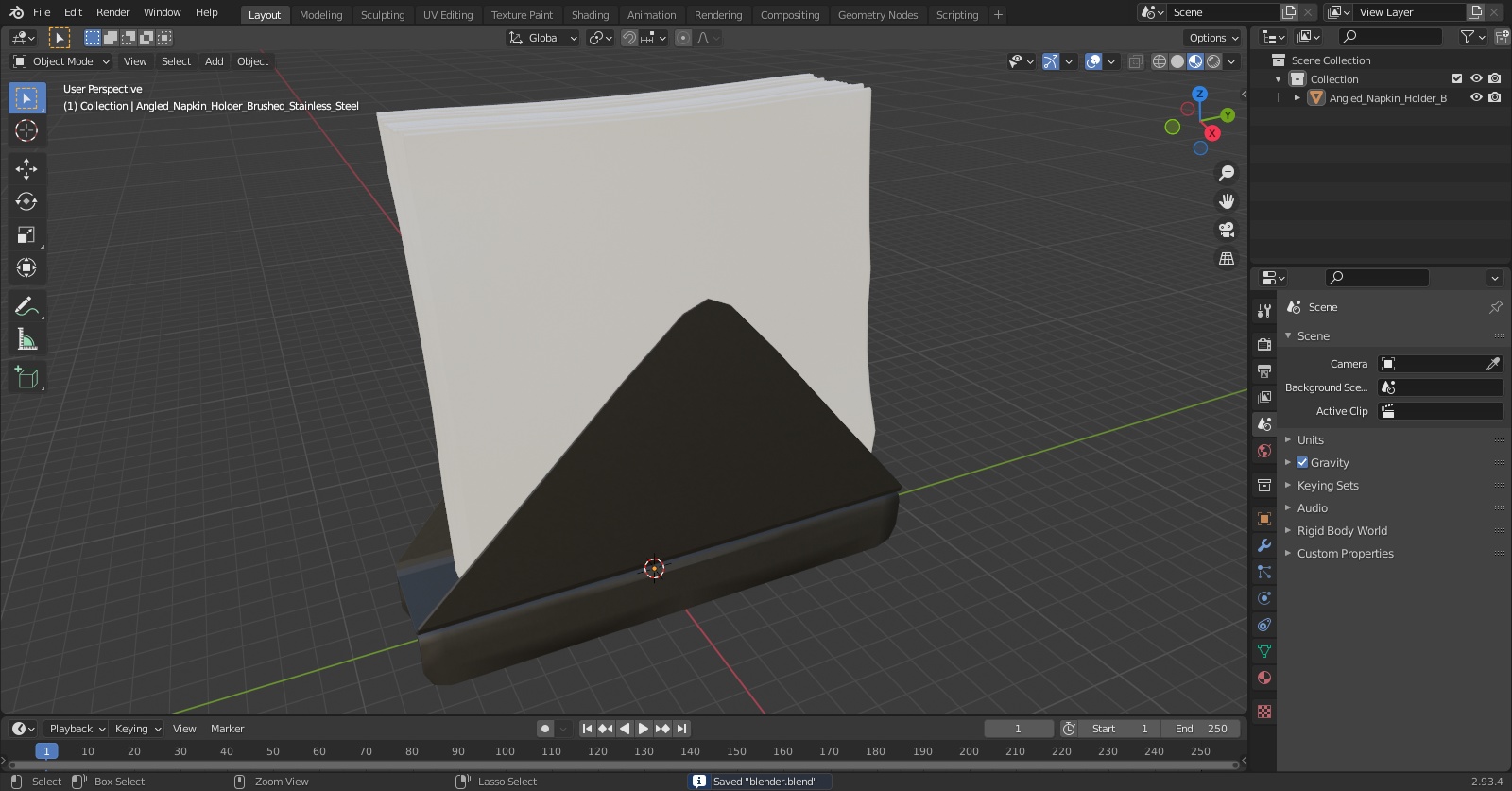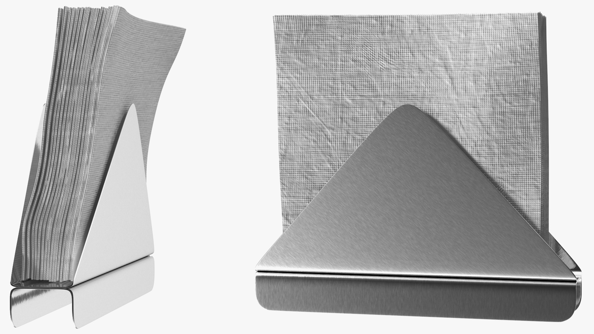 Angled Napkin Holder Brushed Stainless Steel is a high quality, photo real 3d model that will enhance detail and realism to any of your rendering projects. The model has a fully textured, detailed design that allows for close-up renders, and was originally modeled in 3ds Max 2020 and rendered with V-Ray. Renders have no postprocessing!