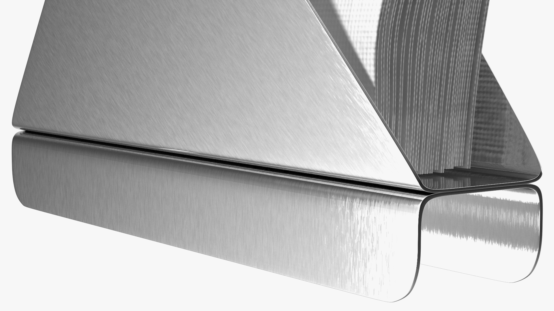 Angled Napkin Holder Brushed Stainless Steel is a three-dimensional model of an equipment used to dispense and hold napkins.