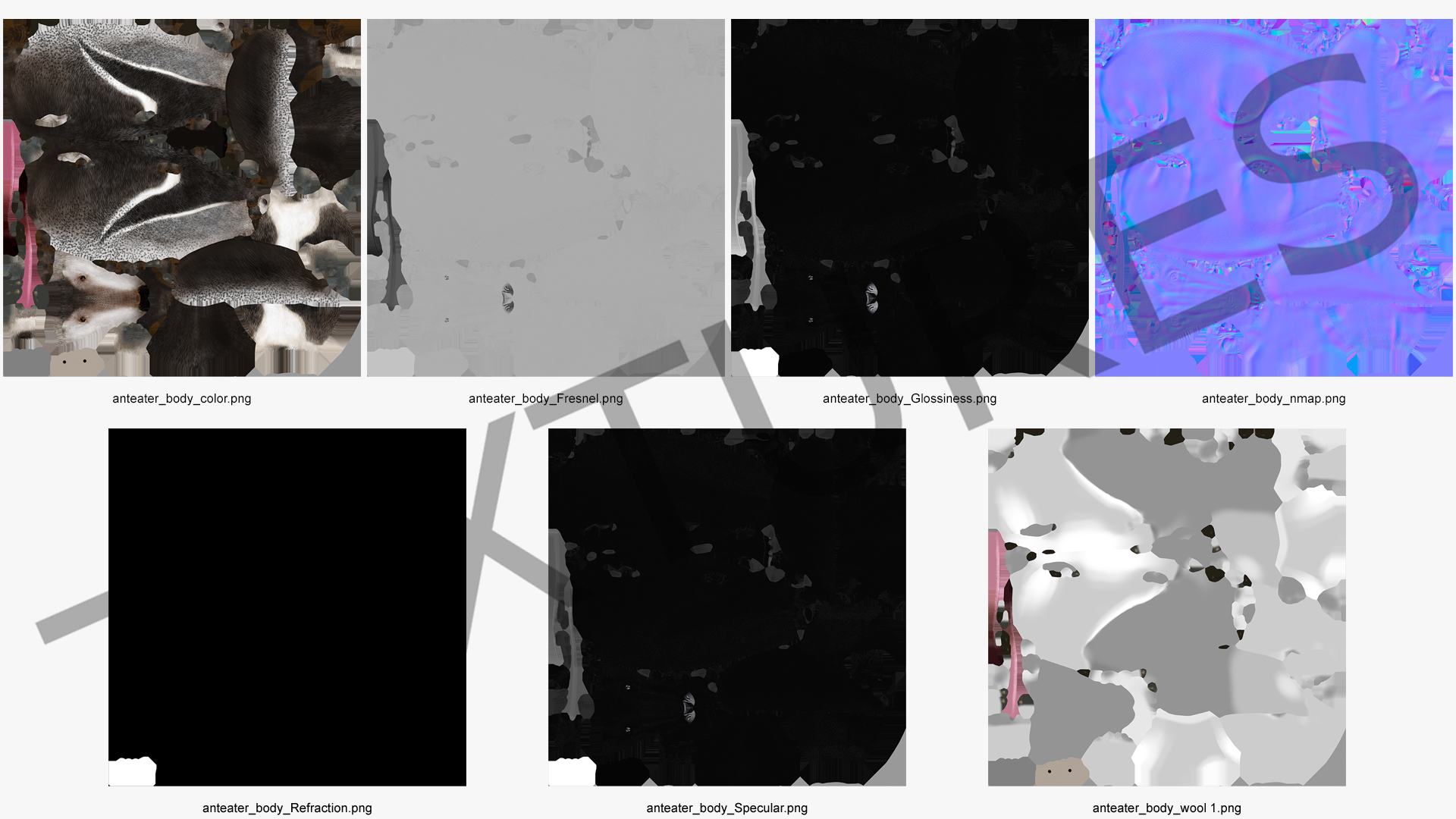 Anteater Rigged Fur is a high quality, photo real 3d model that will enhance detail and realism to any of your rendering projects. The model has a fully textured, detailed design that allows for close-up renders, and was originally modeled in 3ds Max 2020 and rendered with V-Ray. Renders have no postprocessing!