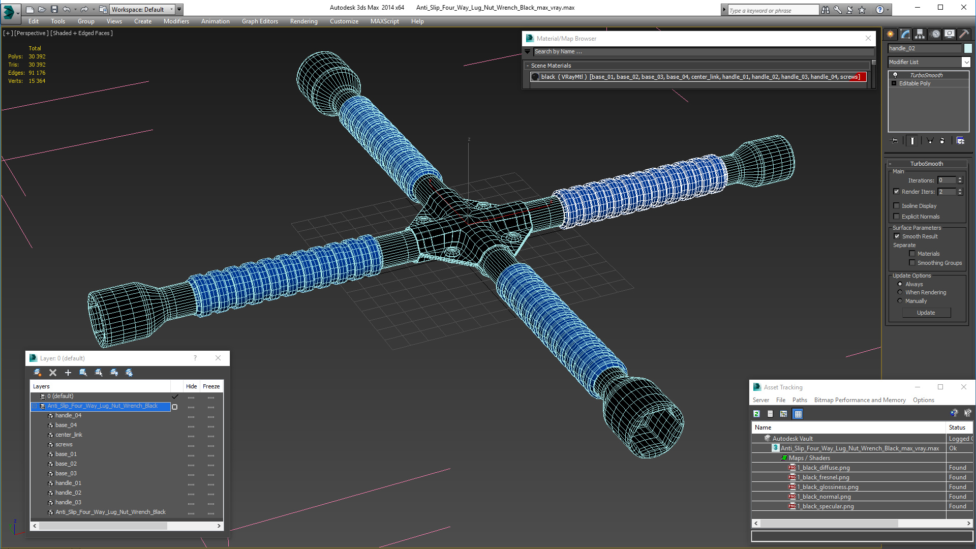 Anti Slip Four Way Lug Nut Wrench Black is a high quality, photo real 3d model that will enhance detail and realism to any of your rendering projects. The model has a fully textured, detailed design that allows for close-up renders, and was originally modeled in 3ds Max 2020 and rendered with V-Ray. Renders have no postprocessing!