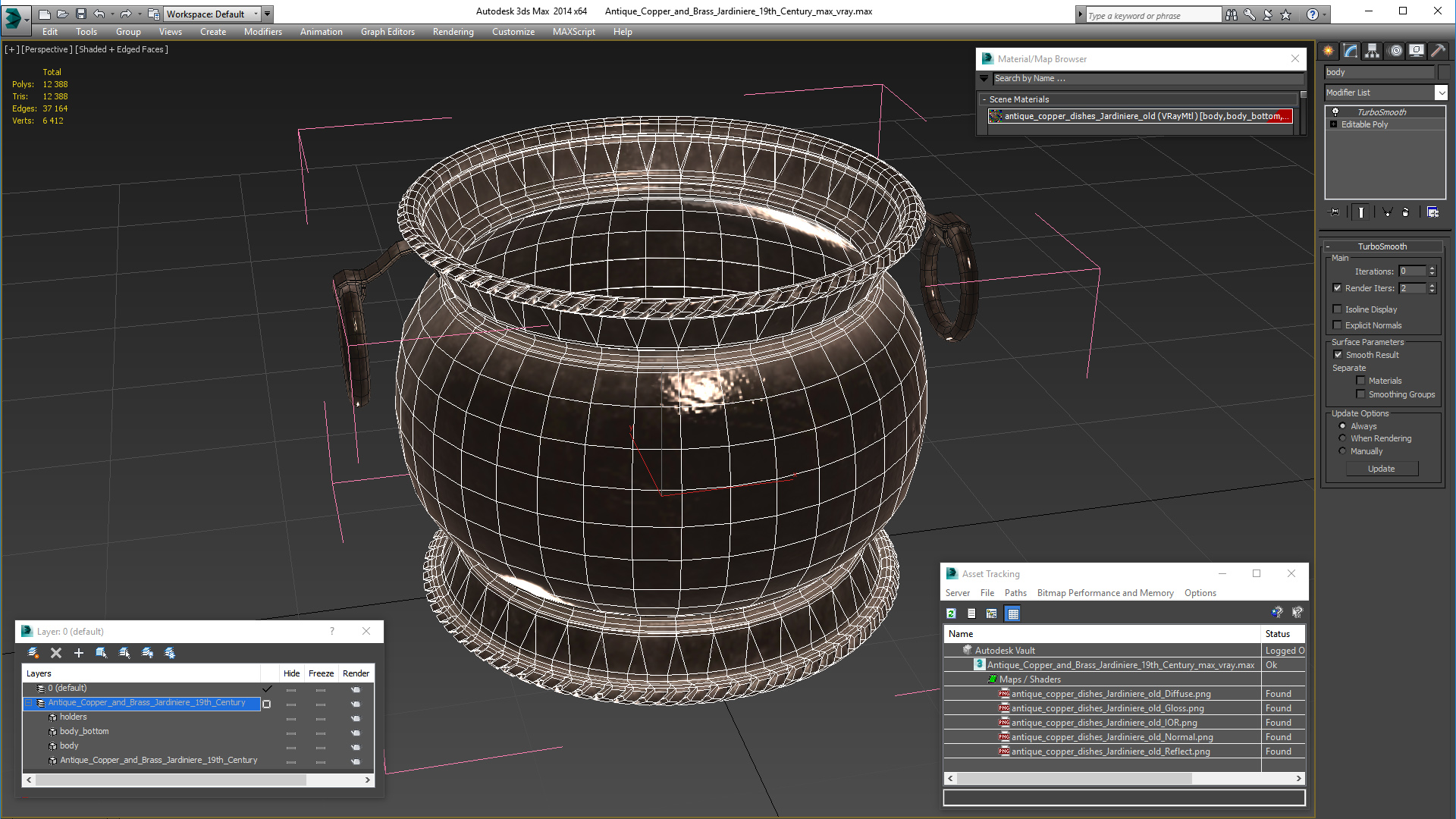 Antique Copper and Brass Jardiniere 19th Century is a high quality, photo real 3d model that will enhance detail and realism to any of your rendering projects. The model has a fully textured, detailed design that allows for close-up renders, and was originally modeled in 3ds Max 2020 and rendered with V-Ray. Renders have no postprocessing!
