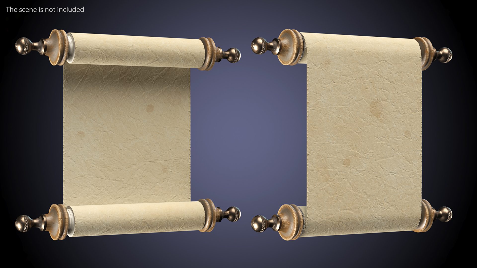Antique Unfolded Blank Parchment Scroll is a high quality, photo real 3d model that will enhance detail and realism to any of your rendering projects. The model has a fully textured, detailed design that allows for close-up renders, and was originally modeled in 3ds Max 2020 and rendered with V-Ray. Renders have no postprocessing!