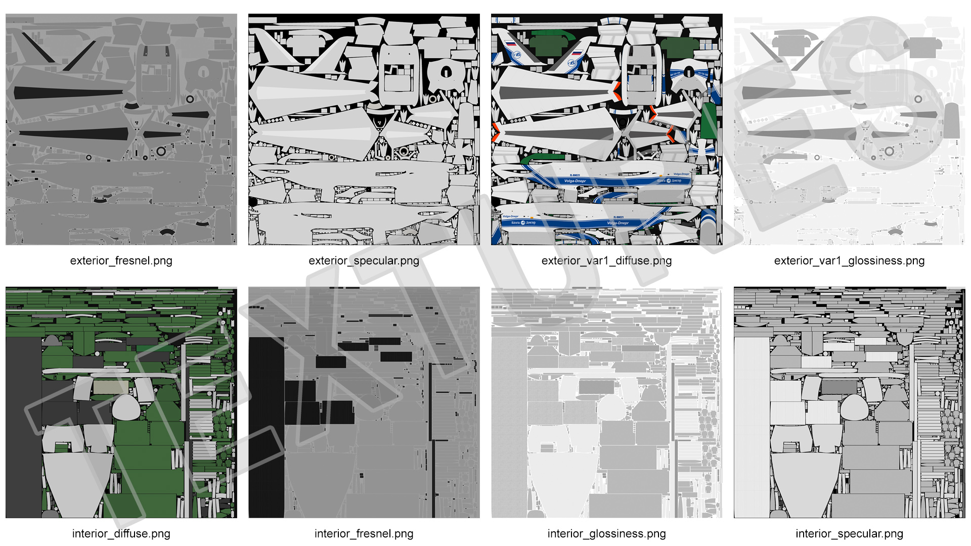 All textures and materials are included and mapped. (All colors can be easily modified.)