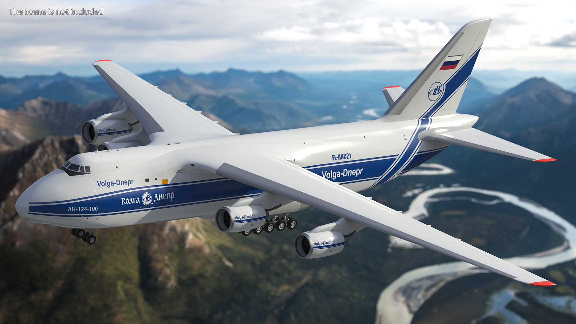 Antonov An124 Ruslan Aircraft Volga Dnepr Rigged airline jet vehicle a Russian heavy transport operating cargo aircraft.