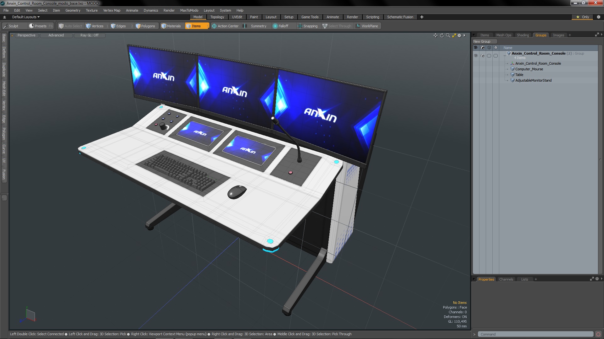 Anxin Control Room Console is a 3D model of control room console which is a control center table with built-in monitors, keyboard, microphone and mouse.