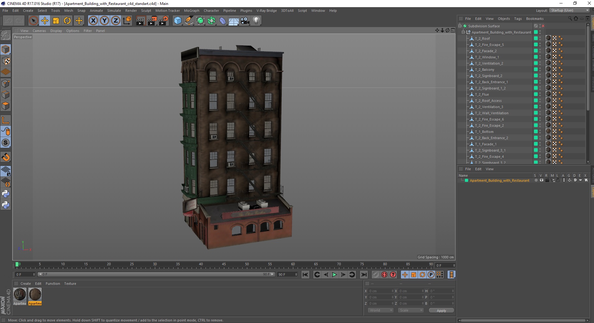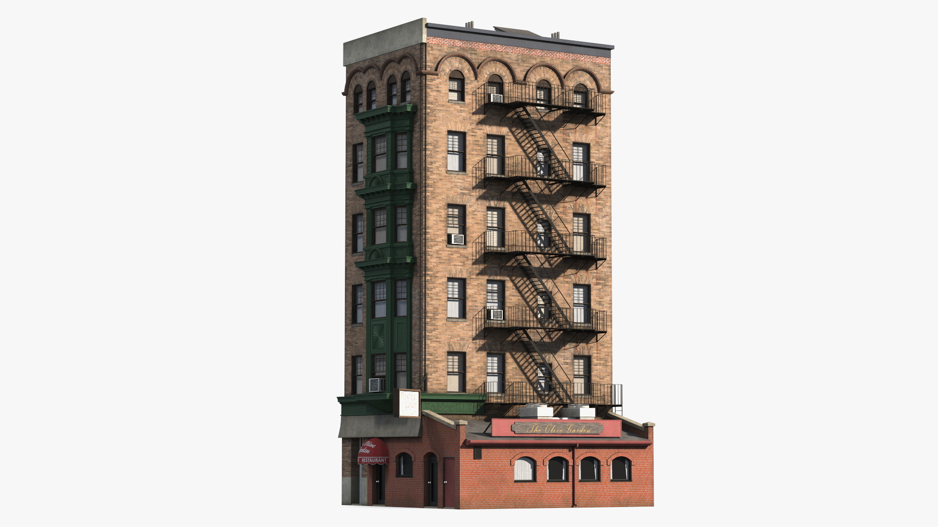 Apartment Building with Restaurant is a 3D model of urban townhouse building which is can be found in historical areas of urban regions.