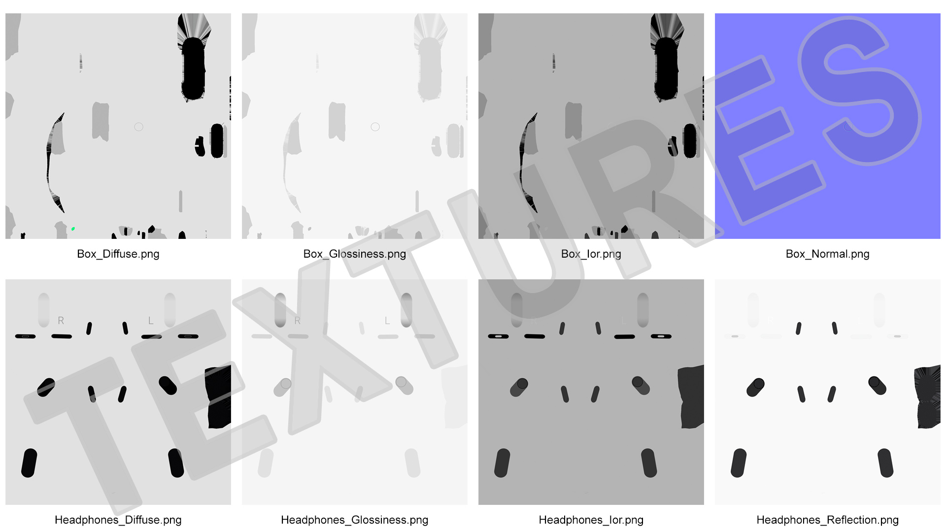 All textures and materials are included and mapped. (All colors can be easily modified.)