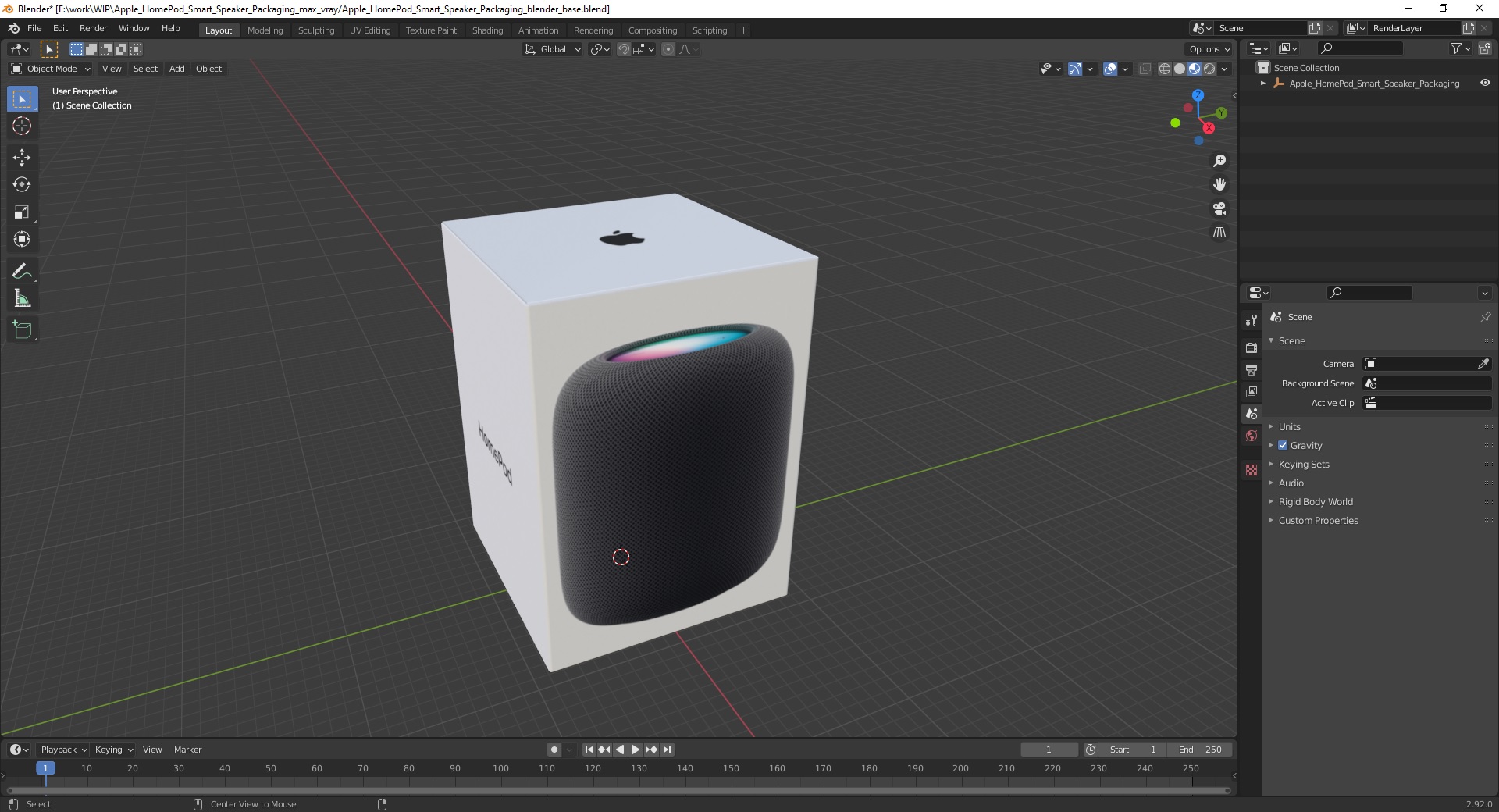 Apple HomePod Smart Speaker Packaging is a high quality, photo real 3d model that will enhance detail and realism to any of your rendering projects. The model has a fully textured, detailed design that allows for close-up renders, and was originally modeled in 3ds Max 2020 and rendered with V-Ray. Renders have no postprocessing!