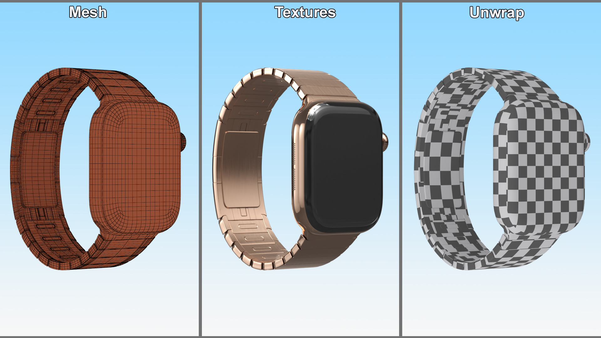 Apple Smartwatch 10 Gold Titanium Display Off is a 3d model of wearable device designed by Apple that combines fitness tracking, health monitoring, and smart features. It typically includes: